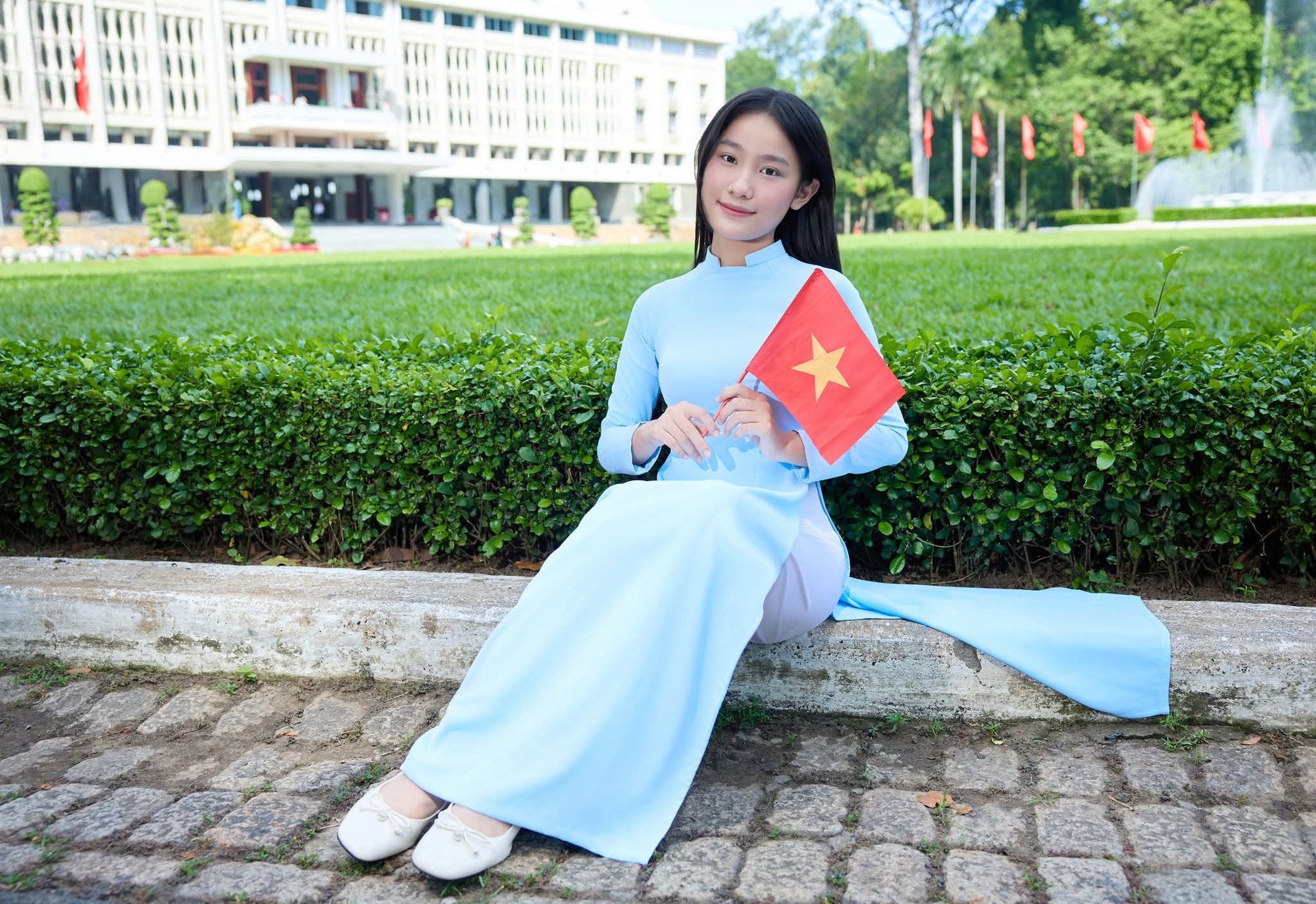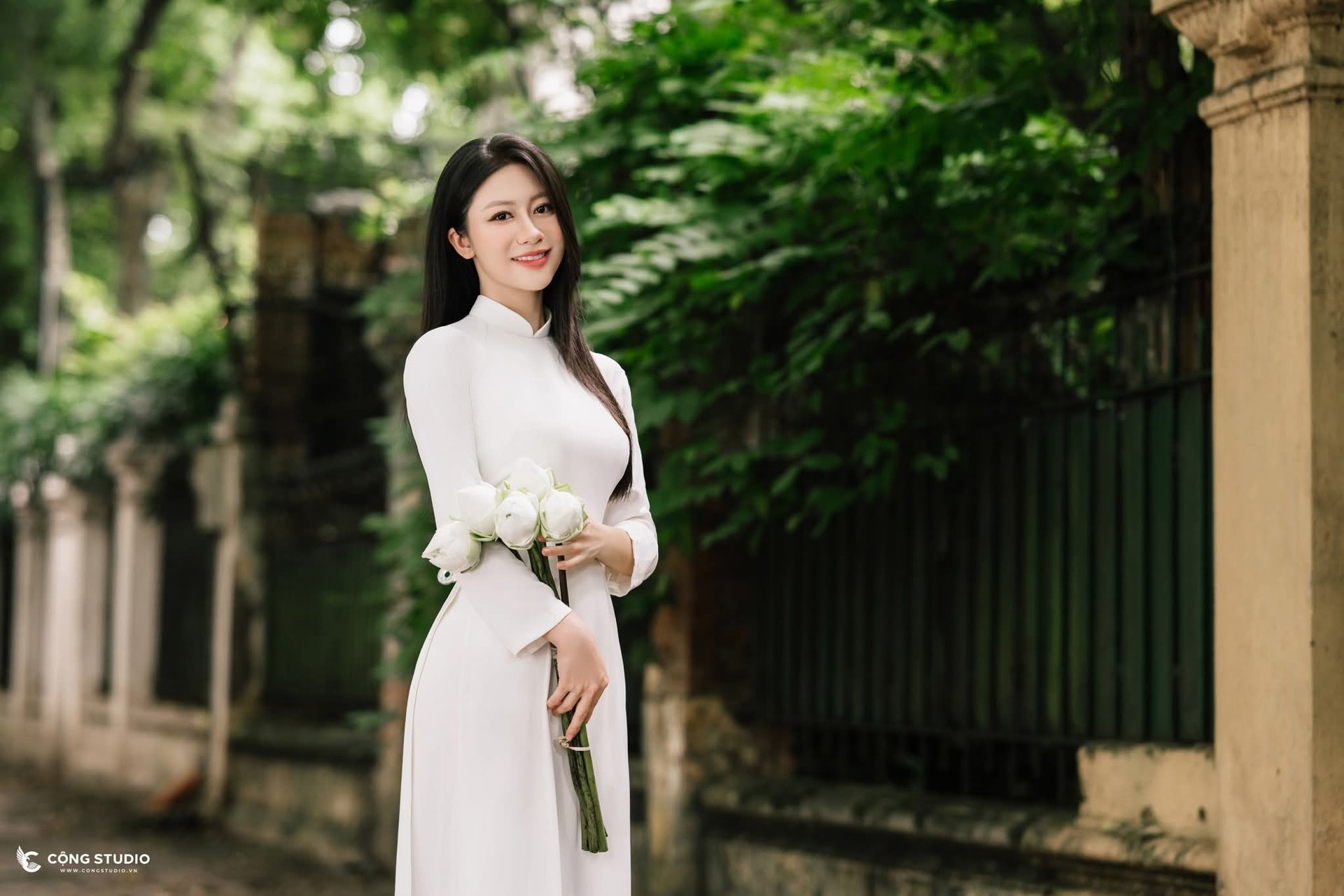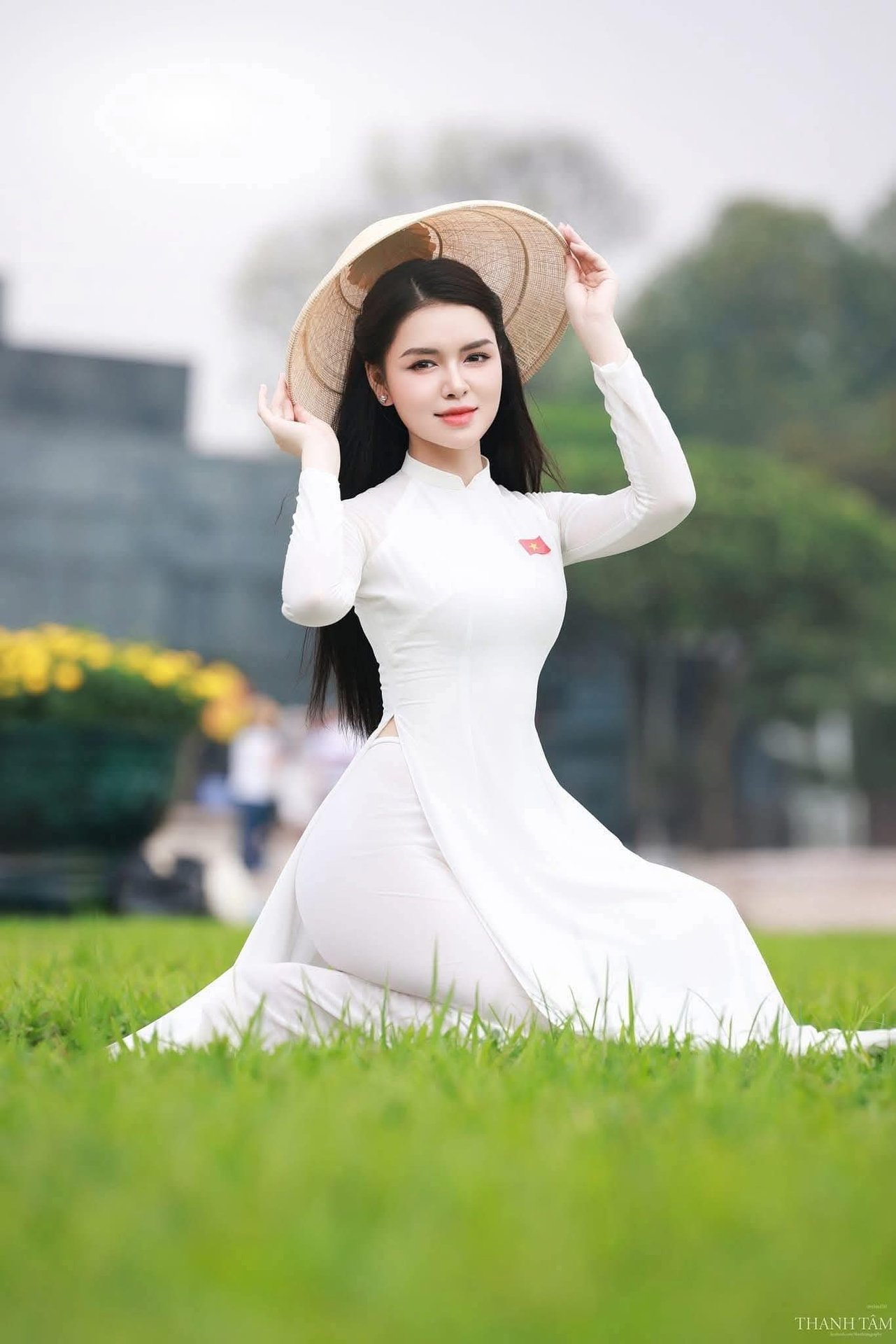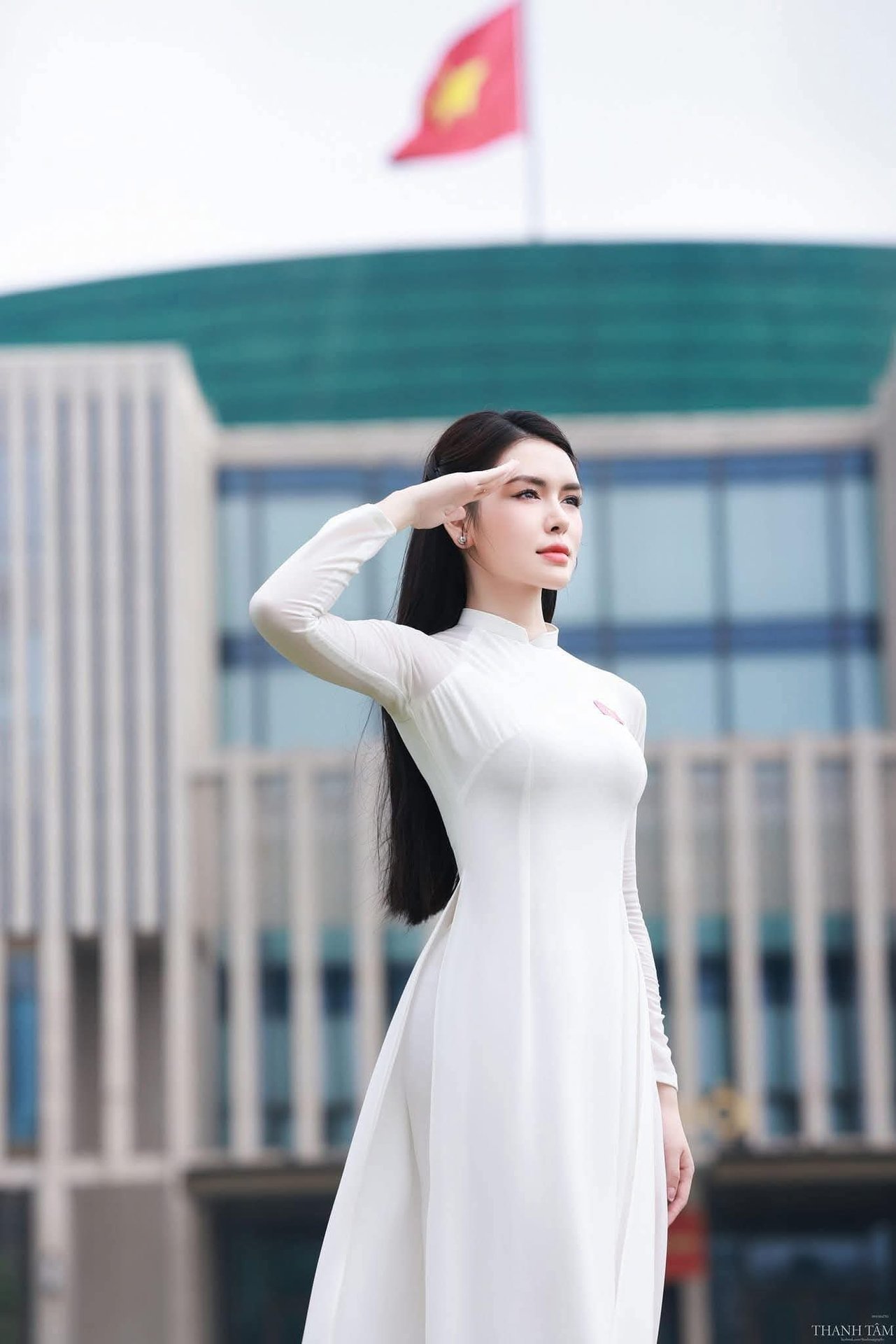 Nét đẹp dịu dàng với áo dài trắng trong không khí đại lễ của toàn dân tộc, em đẹp như mùa thu Hà Nội