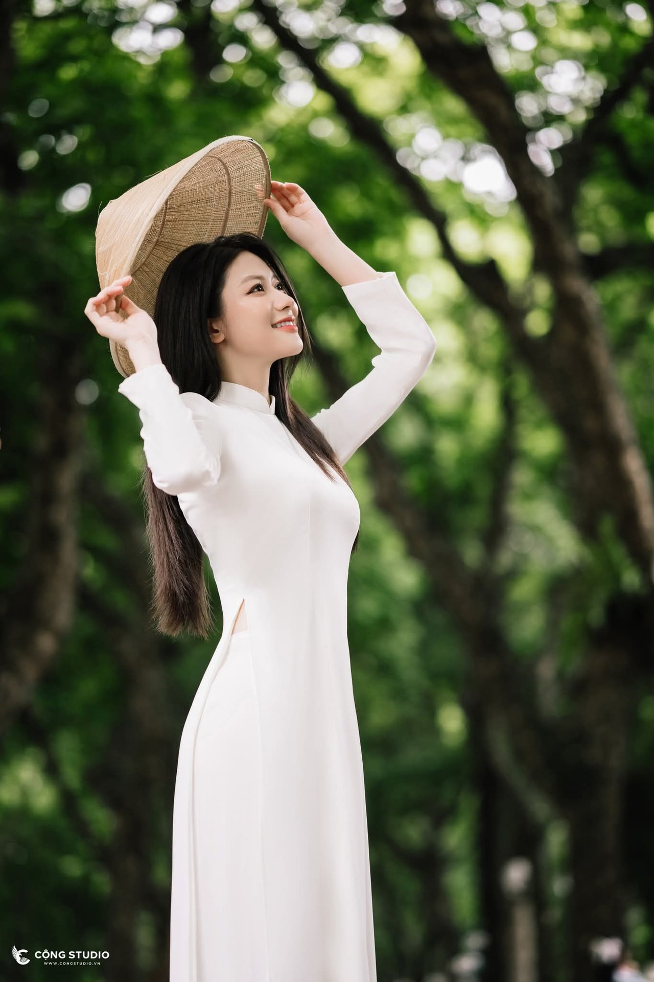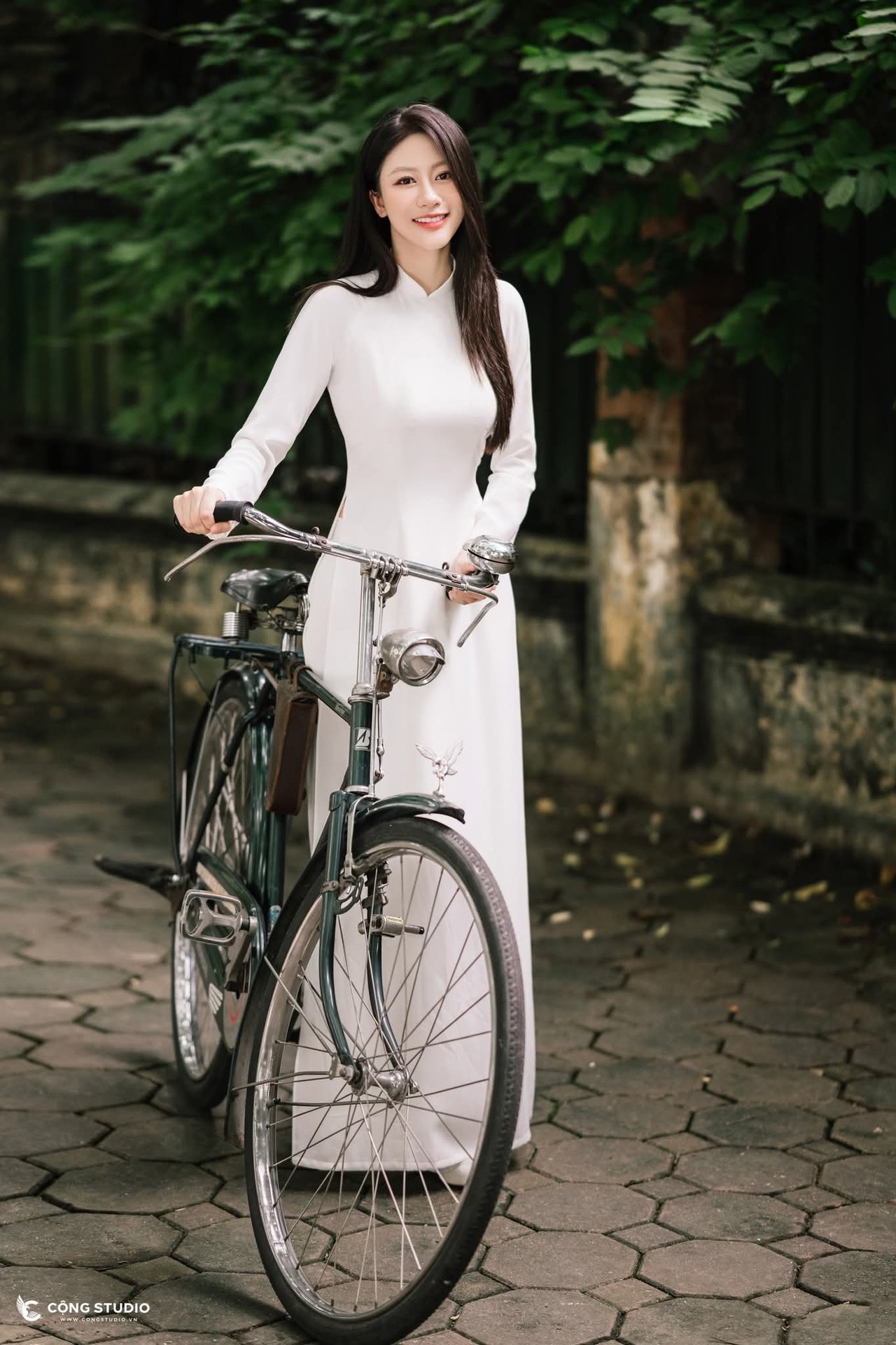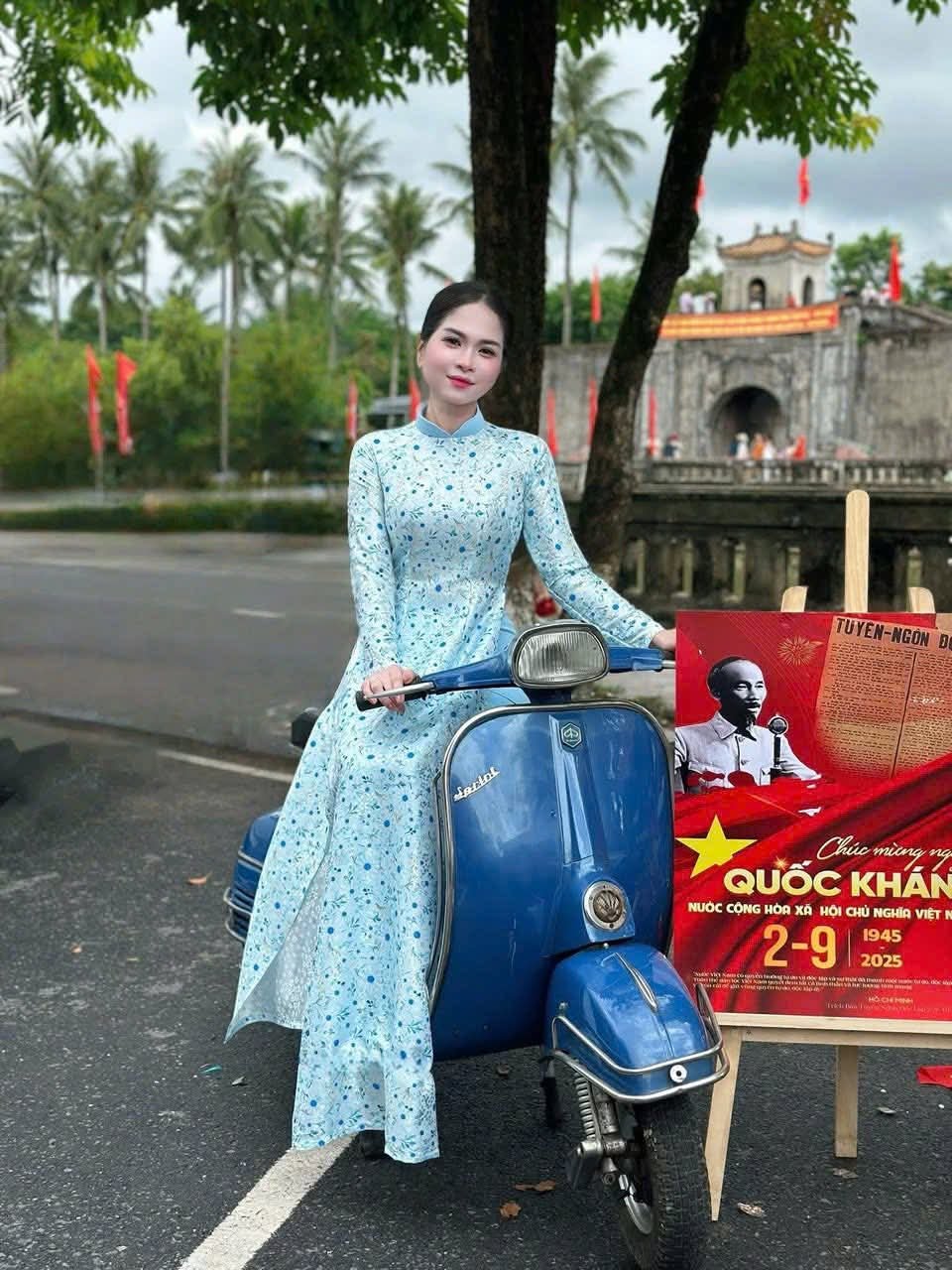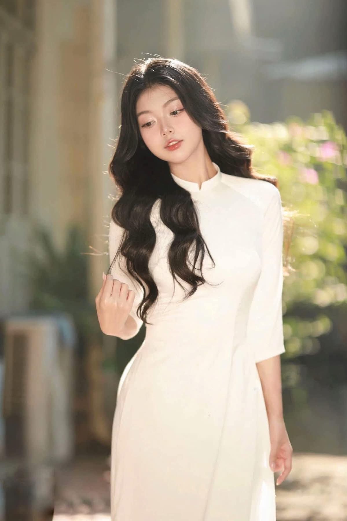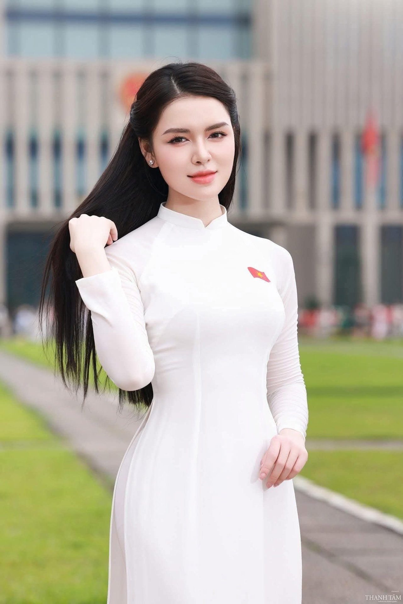 Nét đẹp dịu dàng với áo dài trắng trong không khí đại lễ của toàn dân tộc, em đẹp như mùa thu Hà Nội