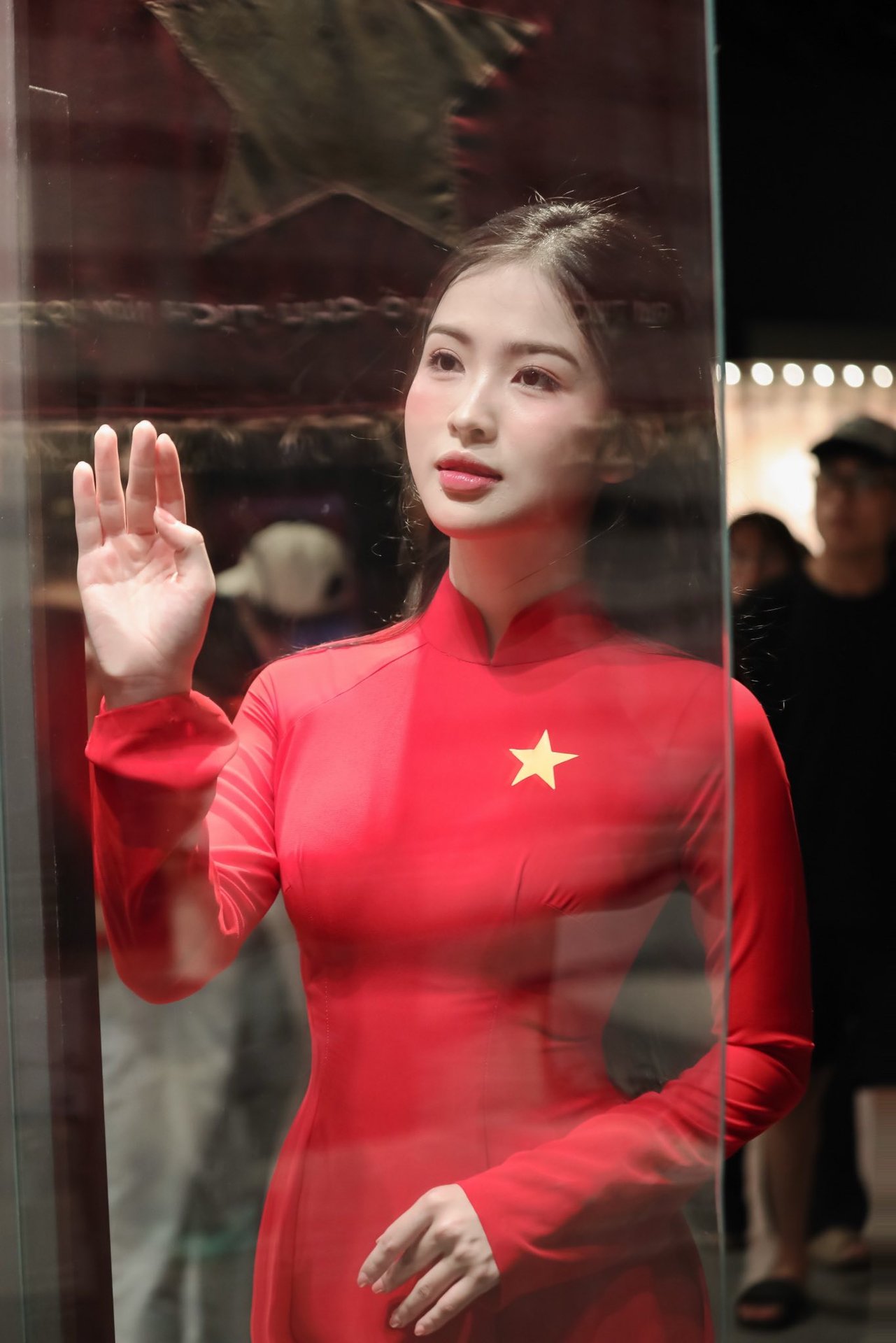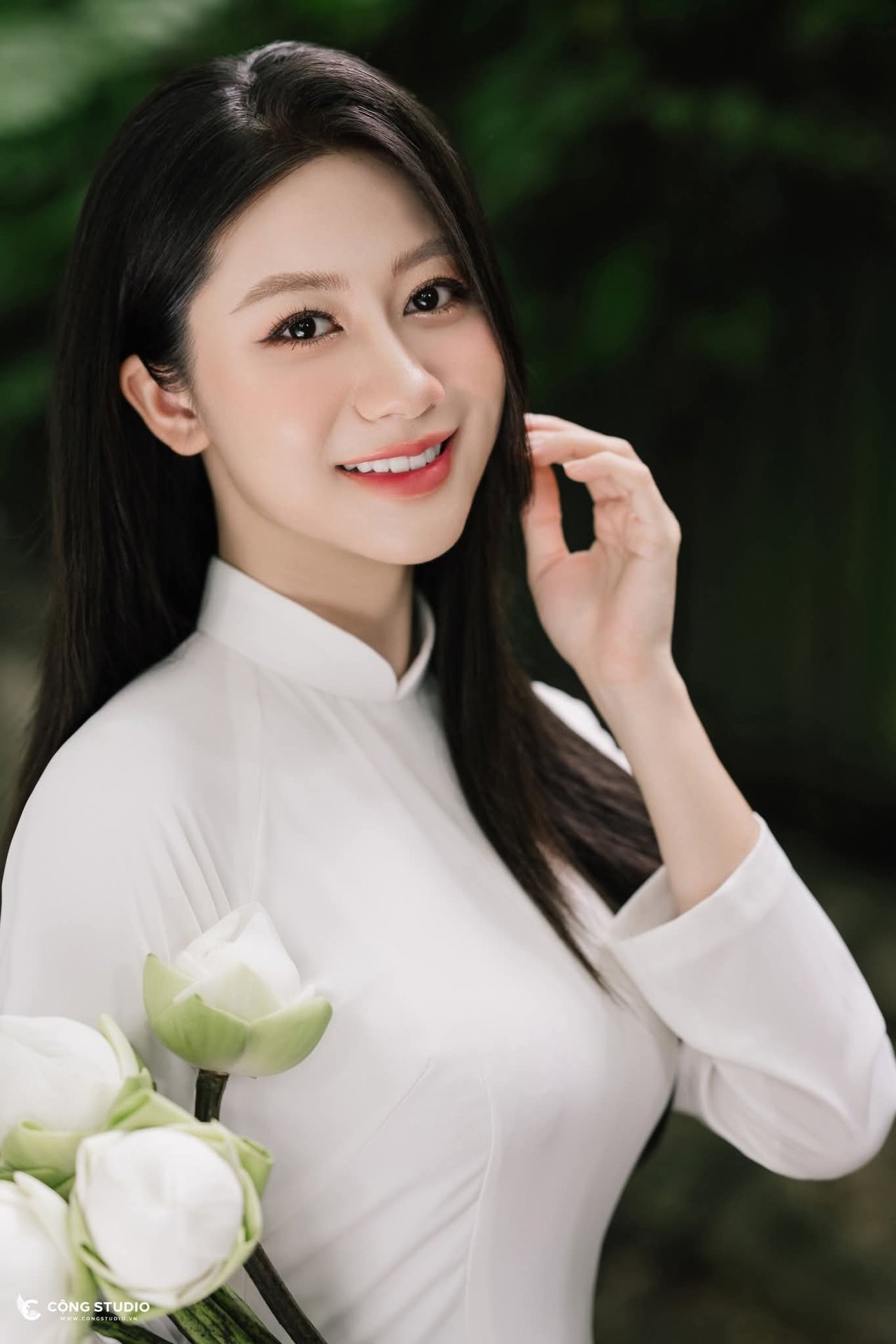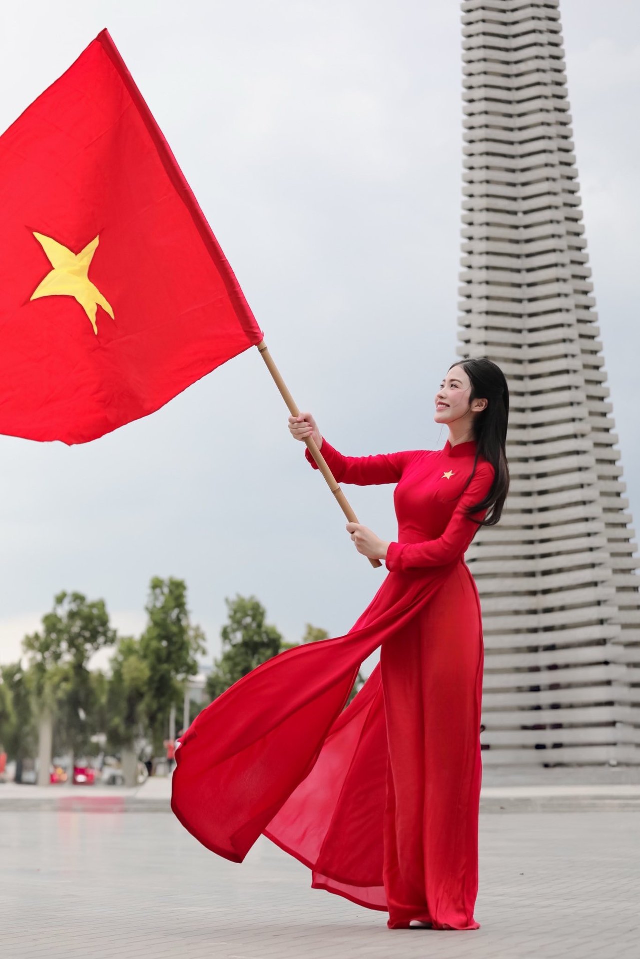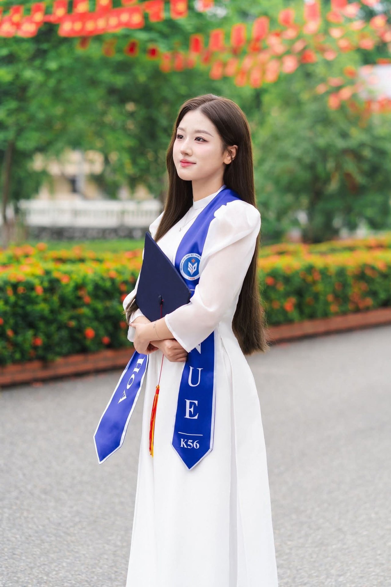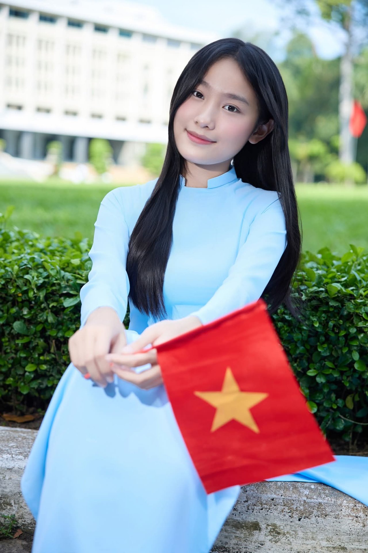 Nét đẹp dịu dàng với áo dài trắng trong không khí đại lễ của toàn dân tộc, em đẹp như mùa thu Hà Nội