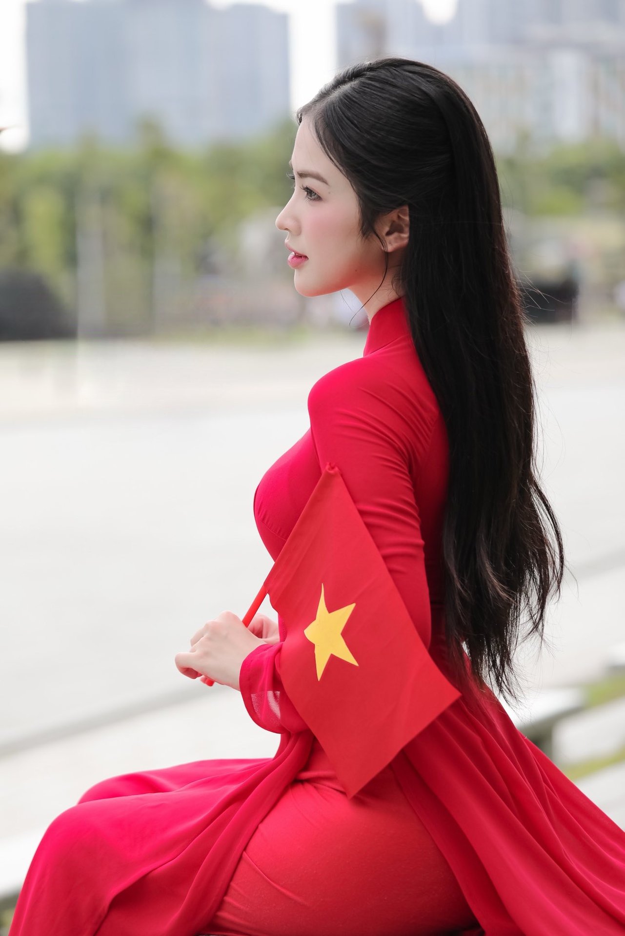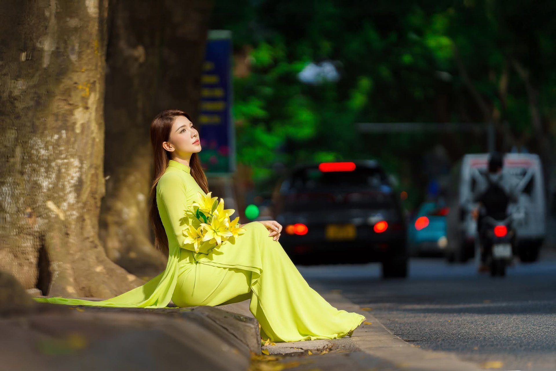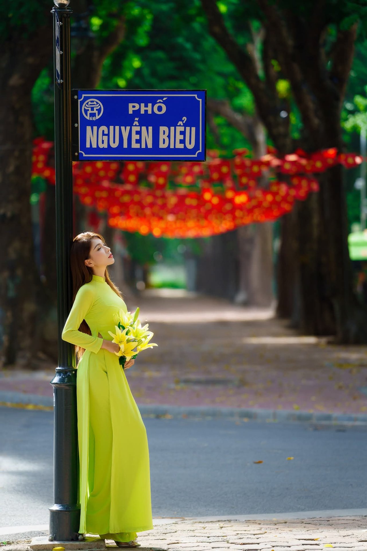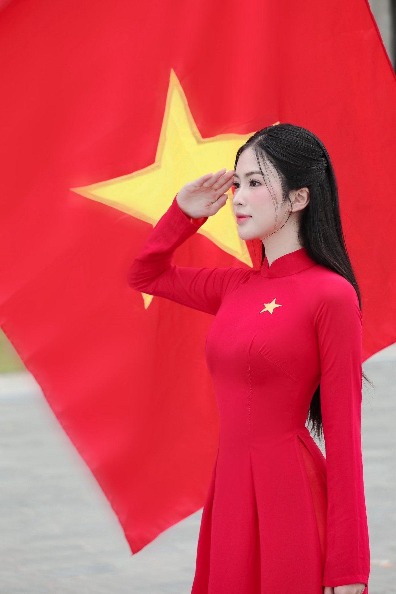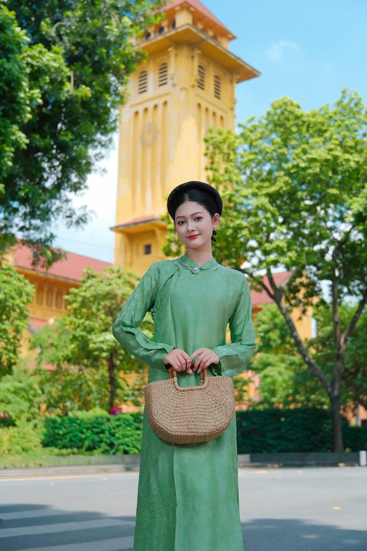 Nét đẹp dịu dàng với áo dài trắng trong không khí đại lễ của toàn dân tộc, em đẹp như mùa thu Hà Nội