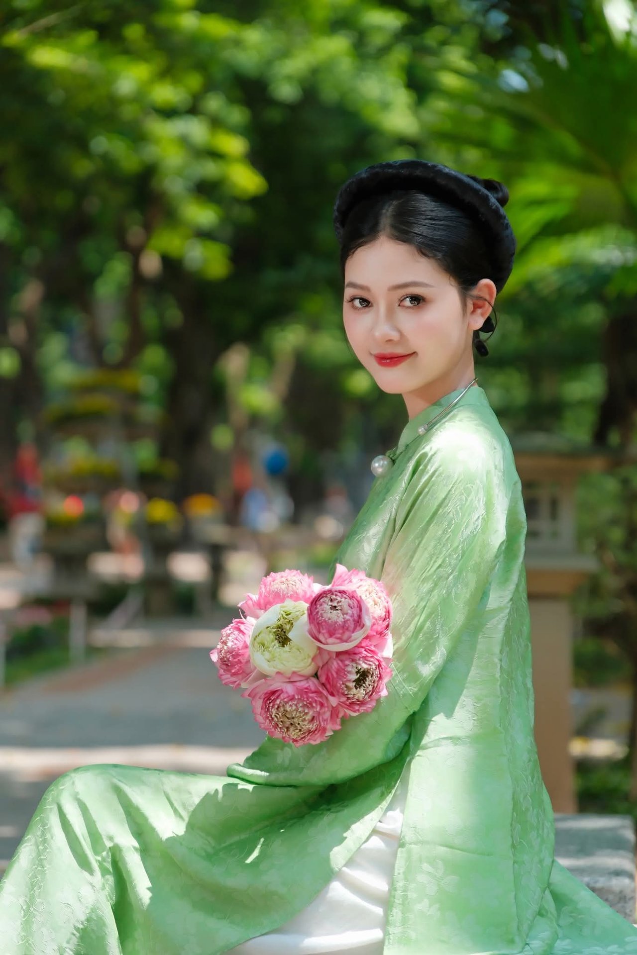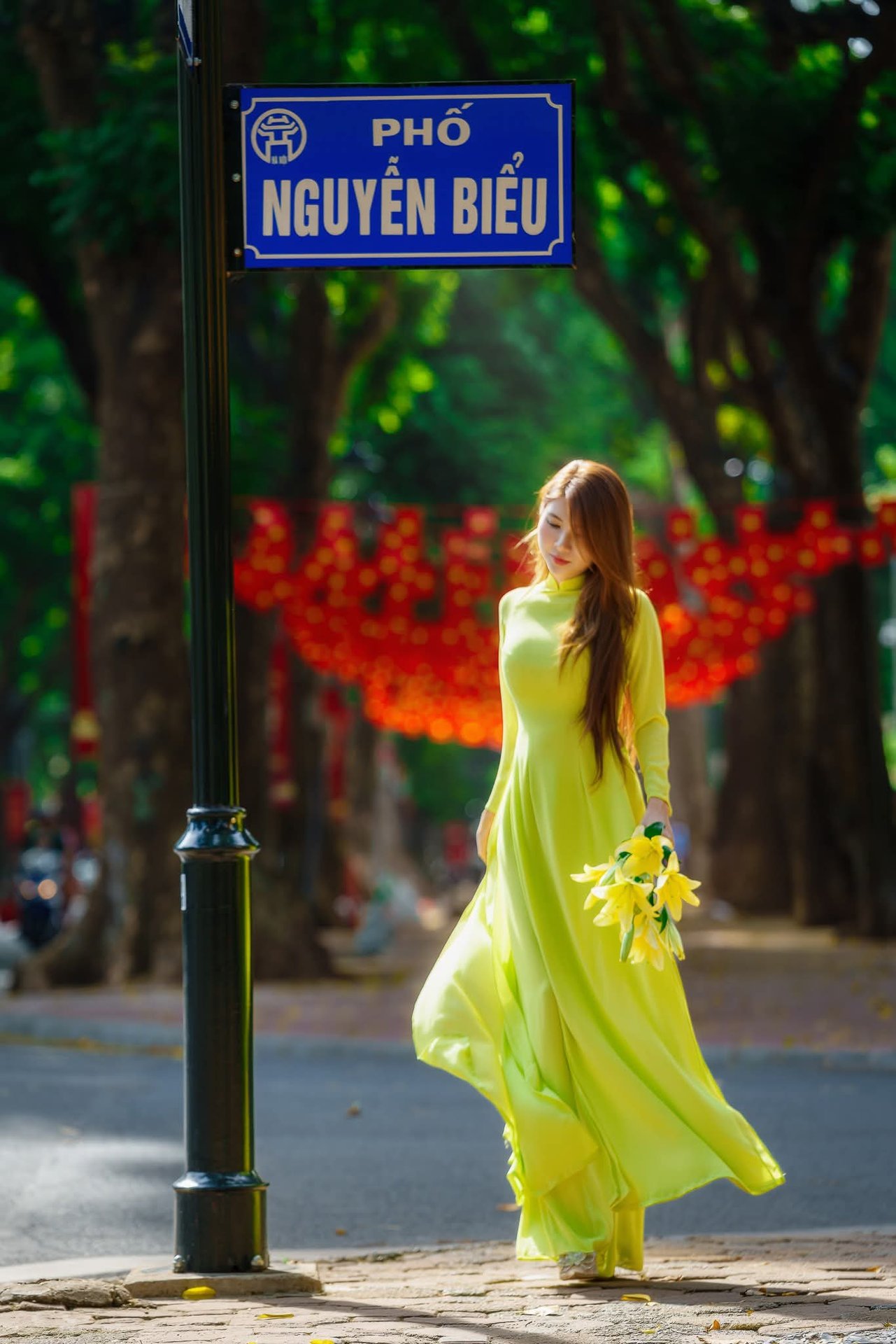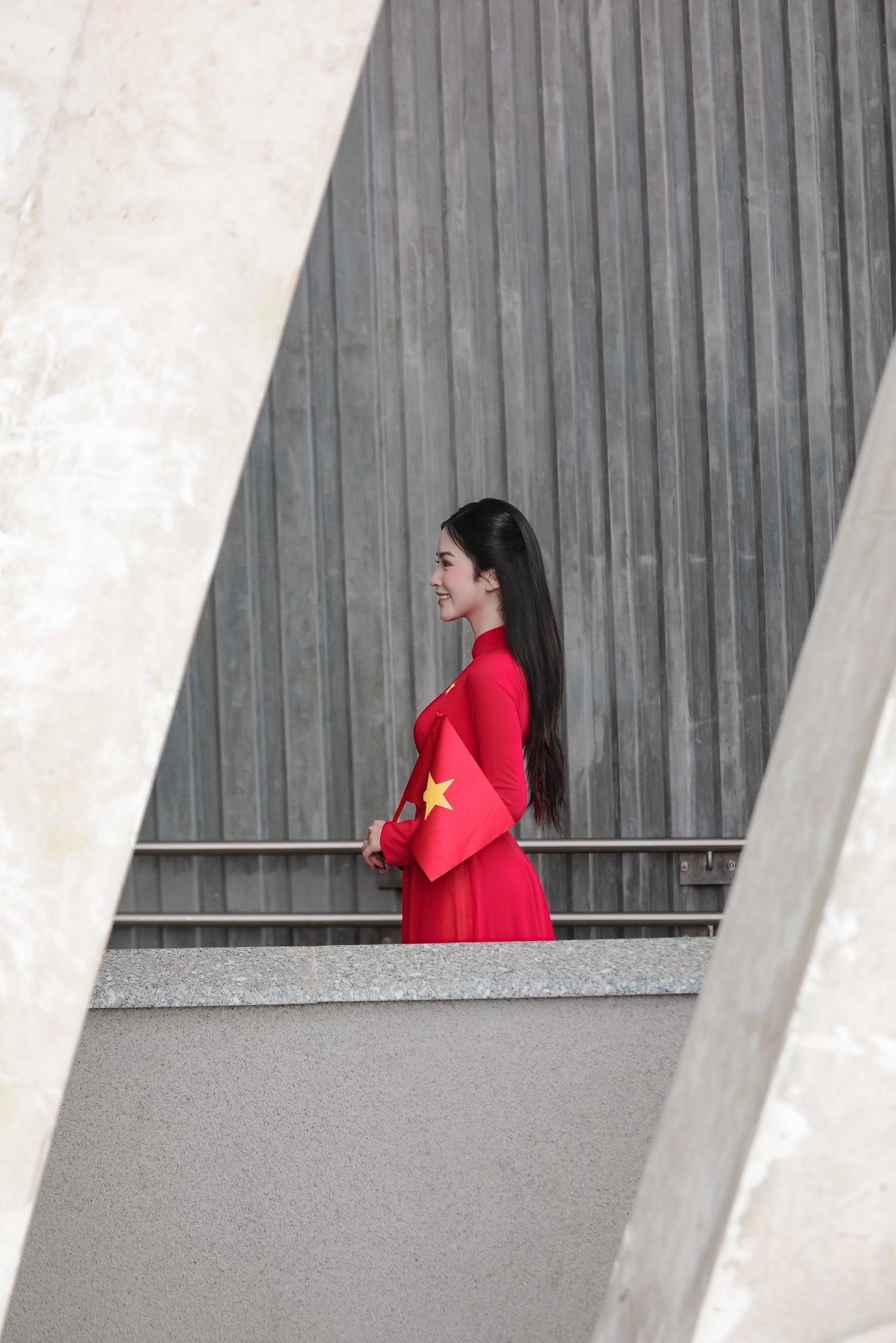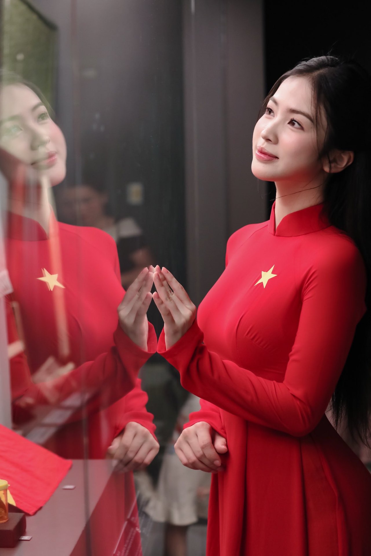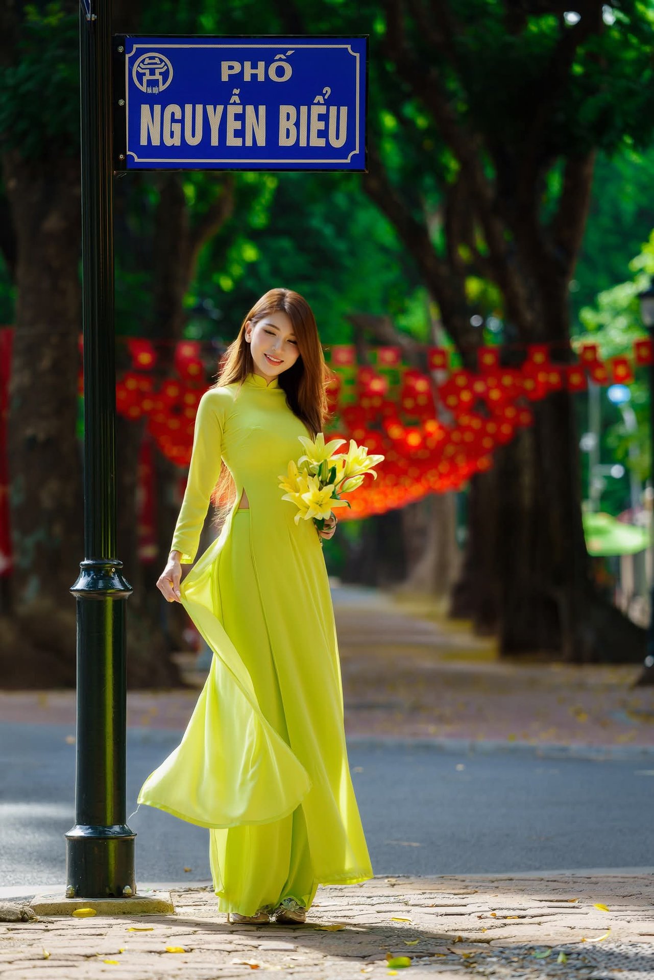Nét đẹp dịu dàng với áo dài trắng trong không khí đại lễ của toàn dân tộc, em đẹp như mùa thu Hà Nội