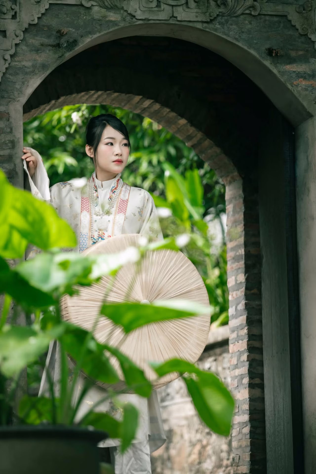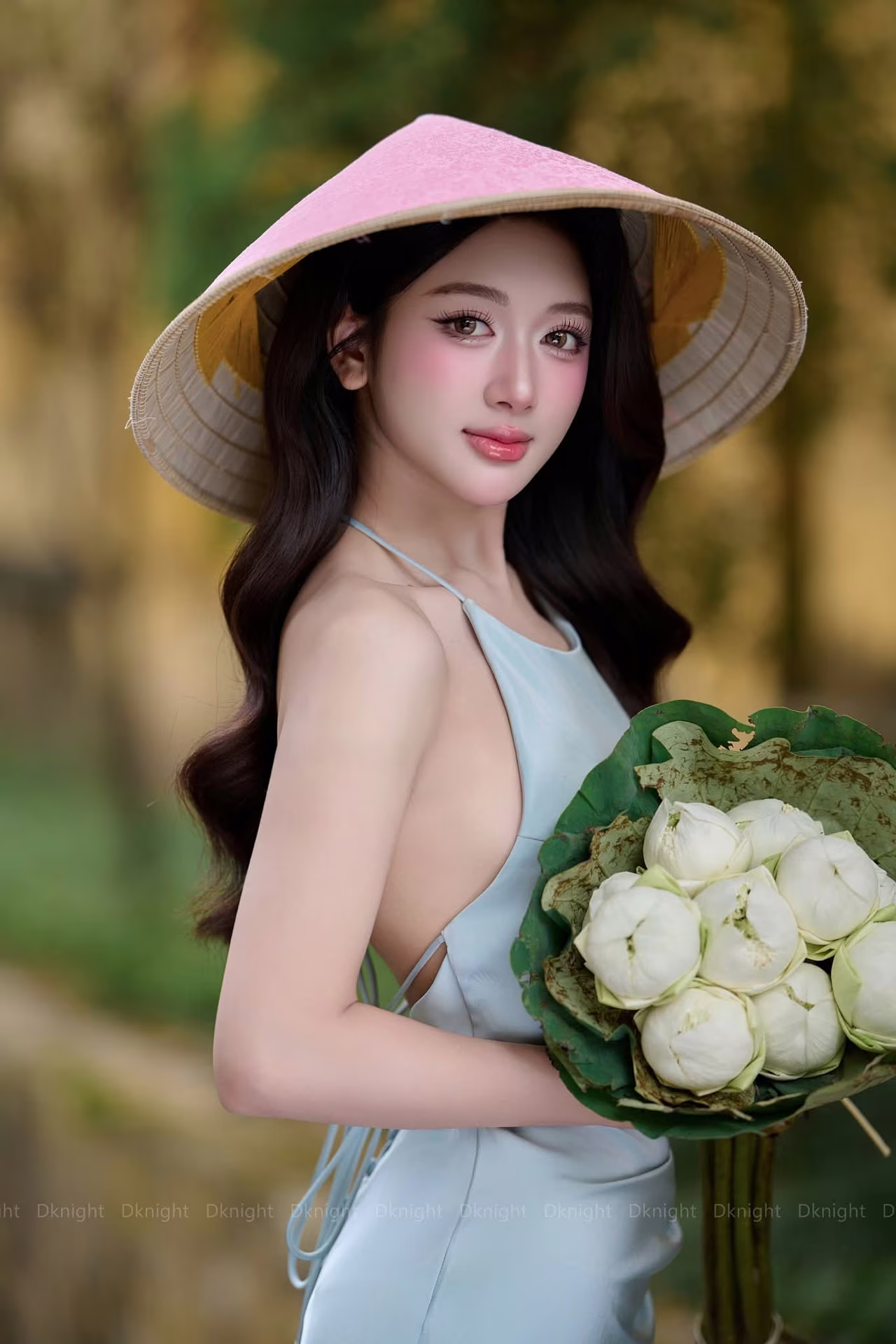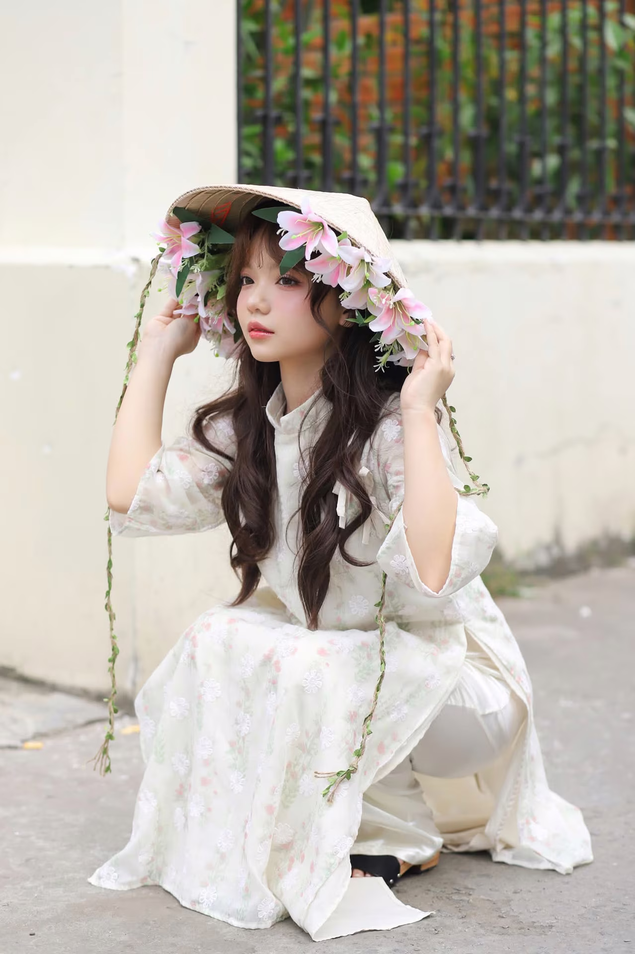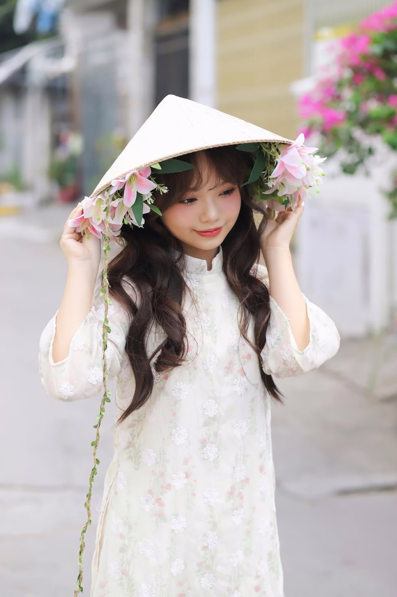 VGU No.143: Discover the Ethereal Beauty of a Vietnamese Girl in Ao Dai and Floral Conical Hat