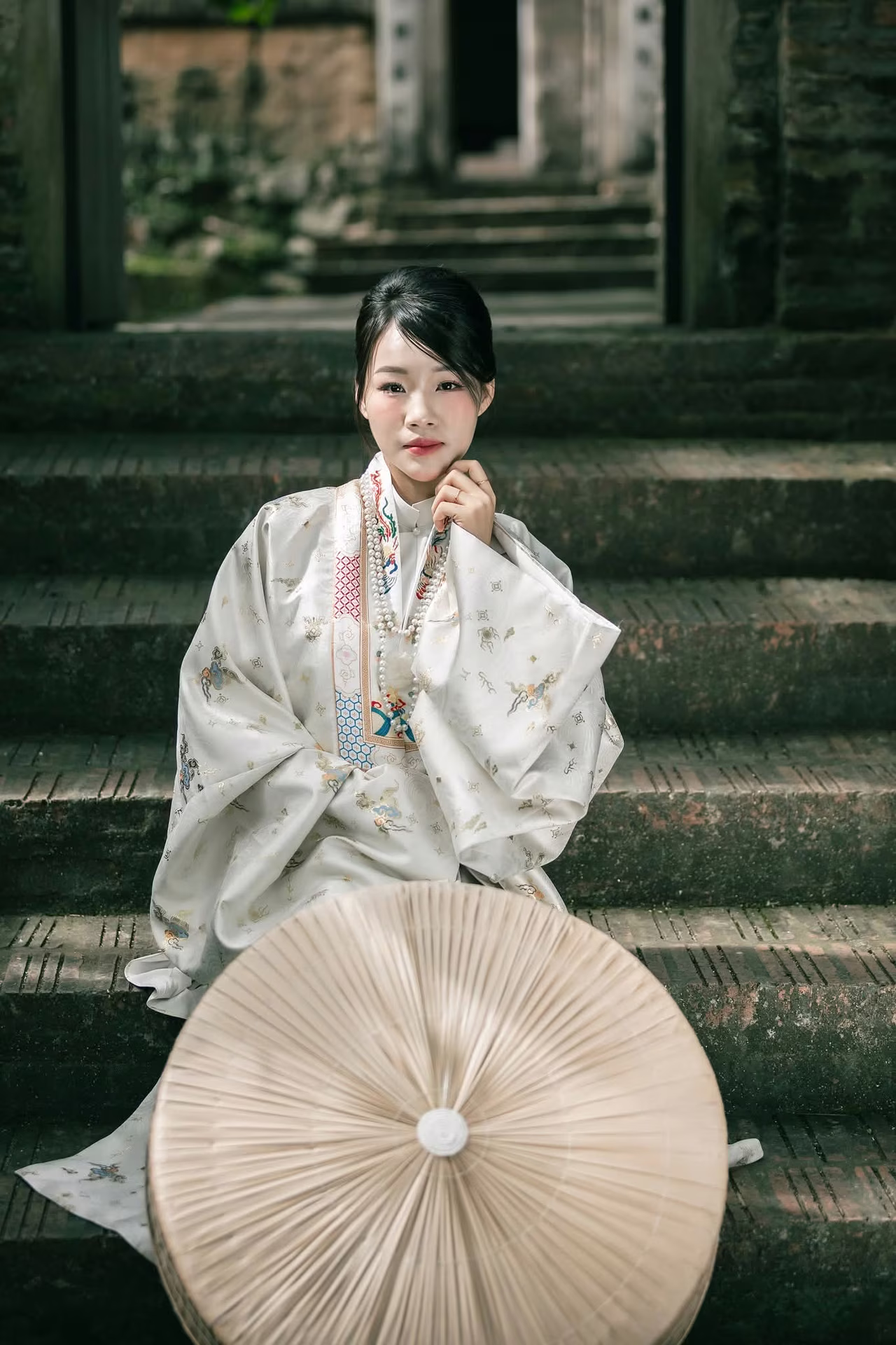 In this captivating VGU No.159 image, a young woman embodying pristine beauty sits gracefully on rustic wooden steps, enveloped by a lush, vibrant garden. Her elegant white dress beautifully complements her radiant smile, exuding an aura of gentleness and peace. Surrounding her are verdant trees and a kaleidoscope of colorful flowers, creating a truly picturesque and serene setting. This moment invites viewers into a world of tranquility, where natural splendor harmonizes perfectly with human grace. The photograph not only captures a stunning visual but also conveys a sense of freshness and the simple joy of life.#VGU #Garden #Beauty #SereneMoments