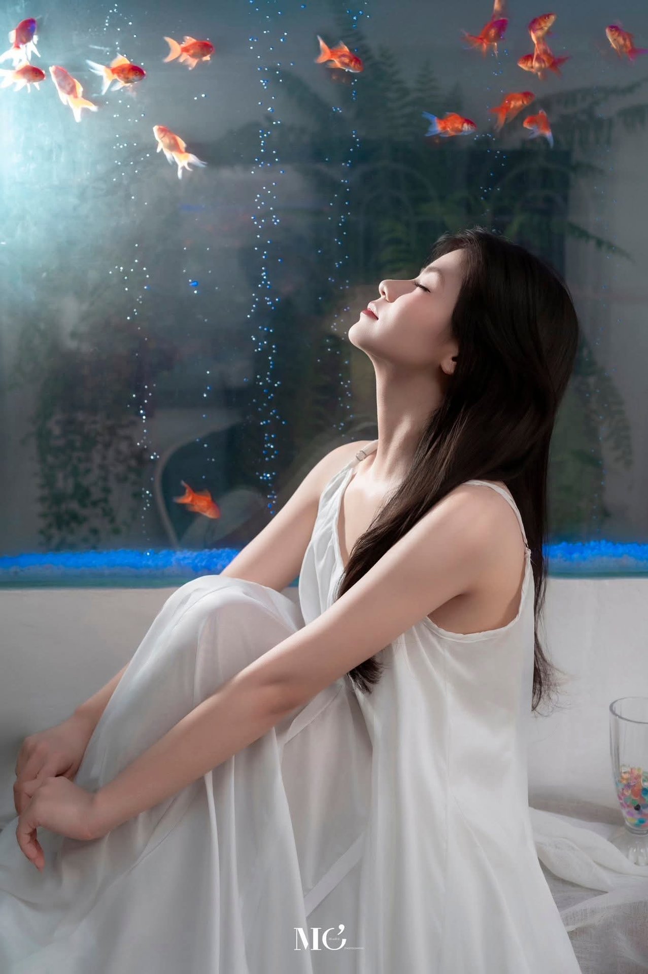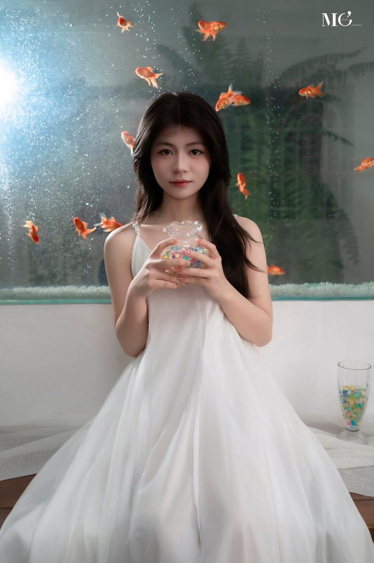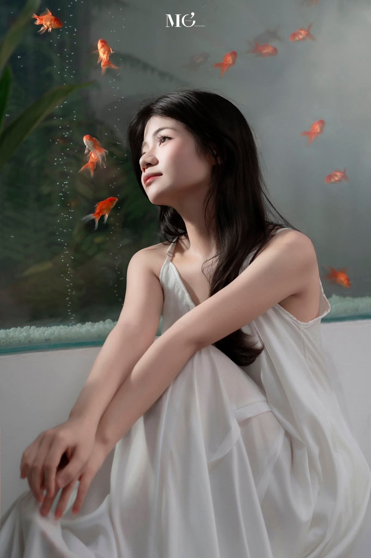 Dreamy Muse & Goldfish: Poetic Artistic Portrait