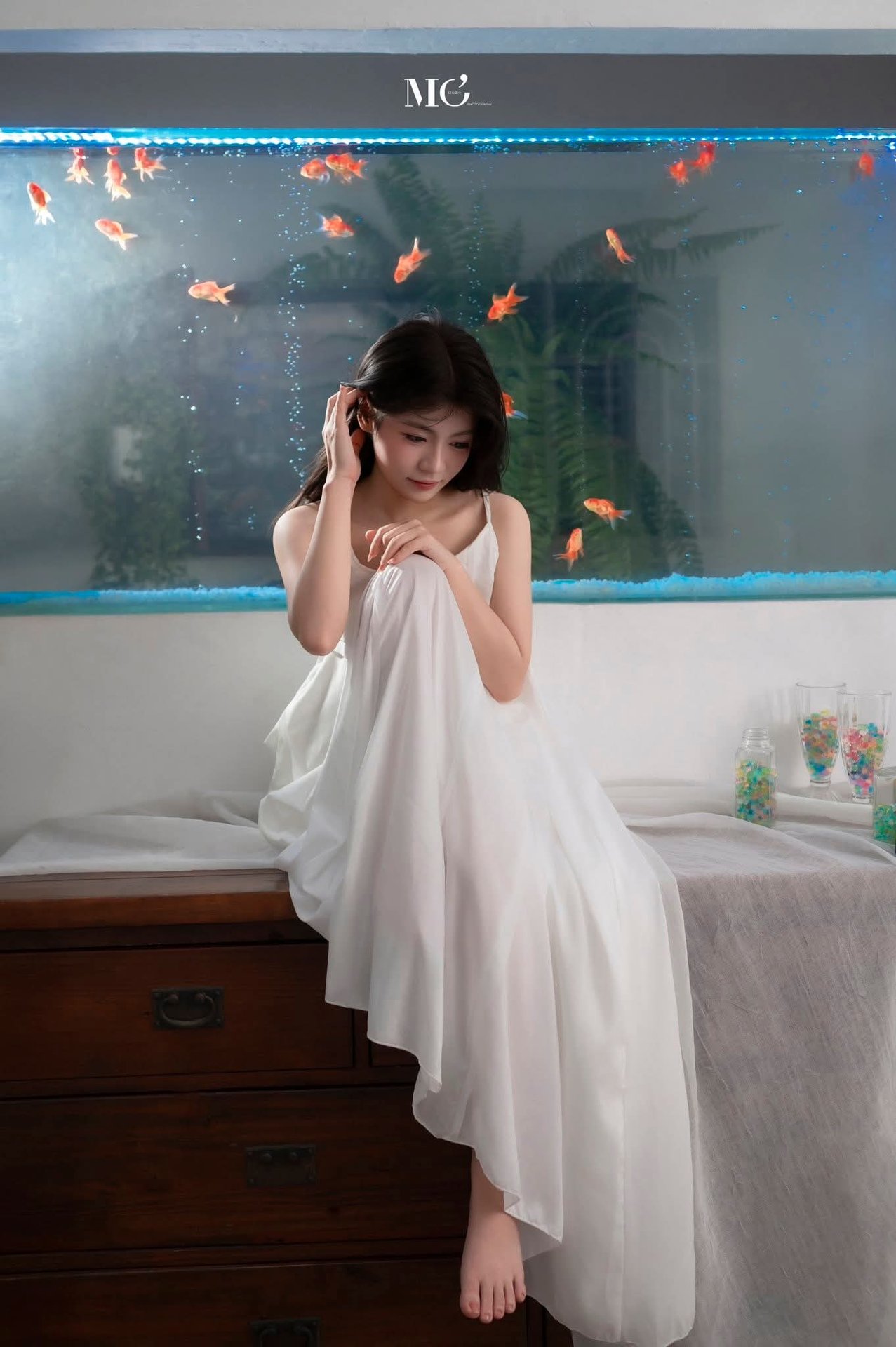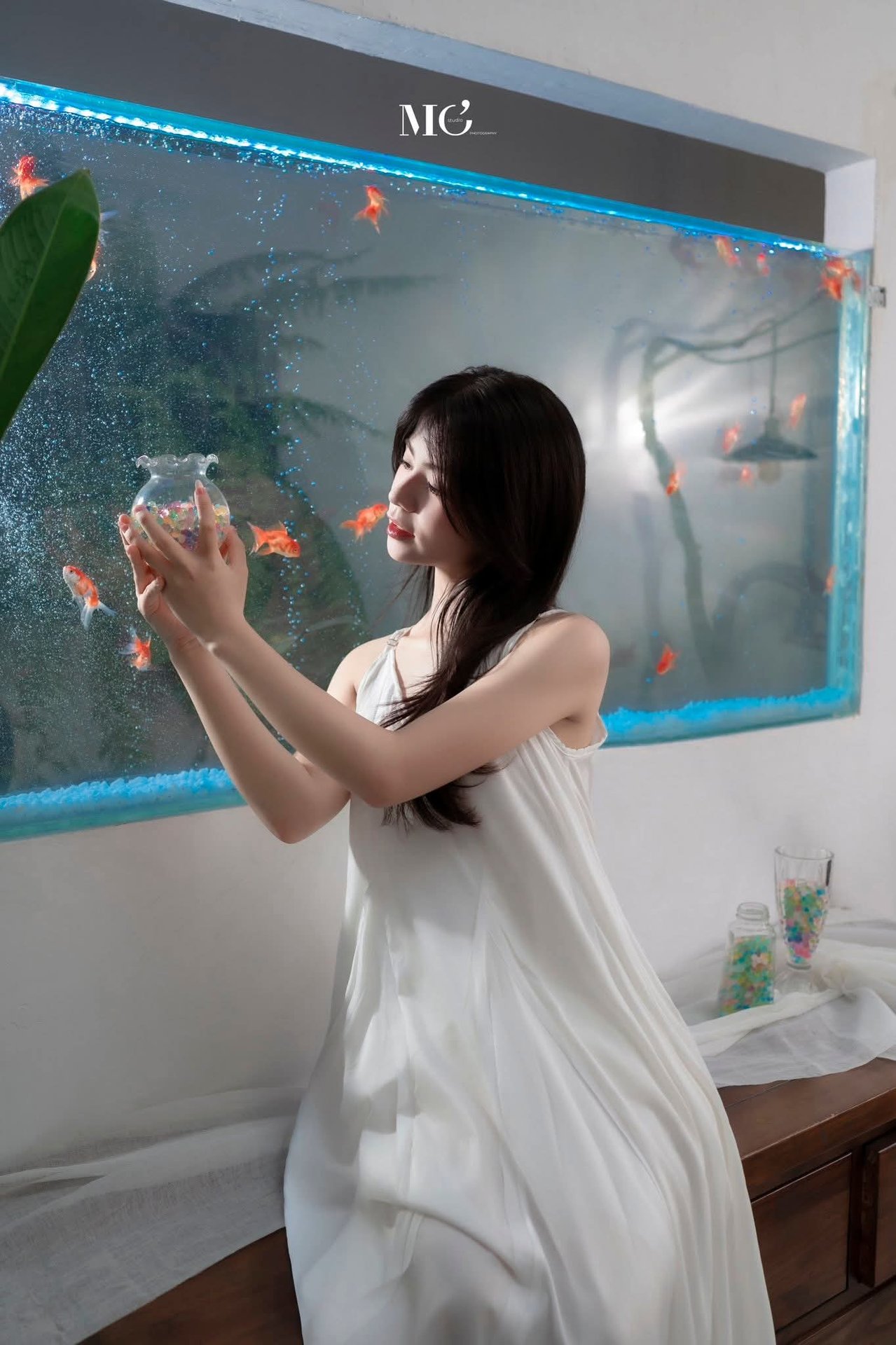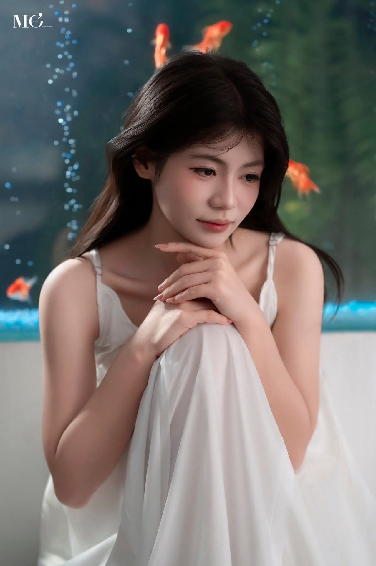 Dreamy Muse & Goldfish: Poetic Artistic Portrait