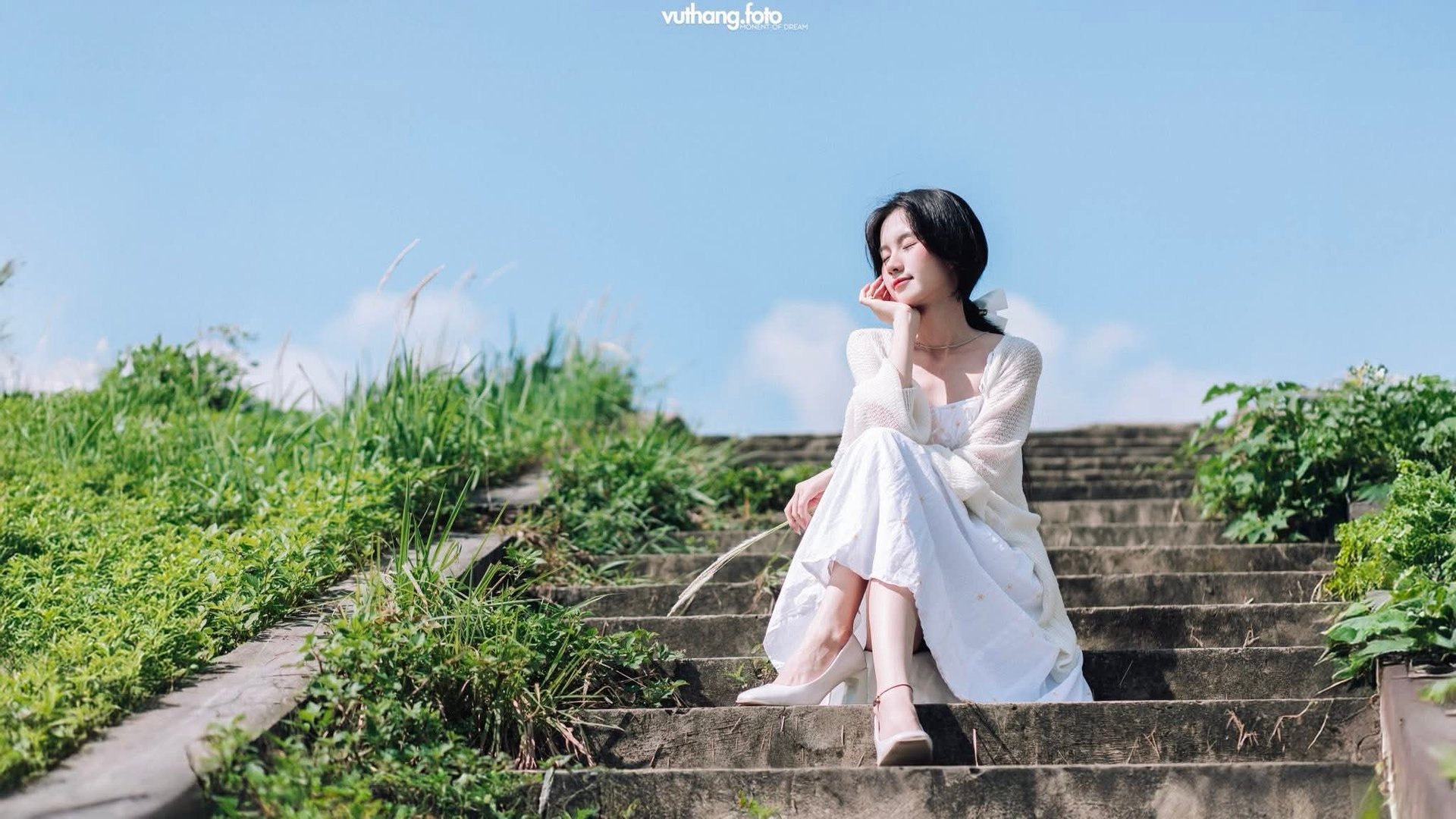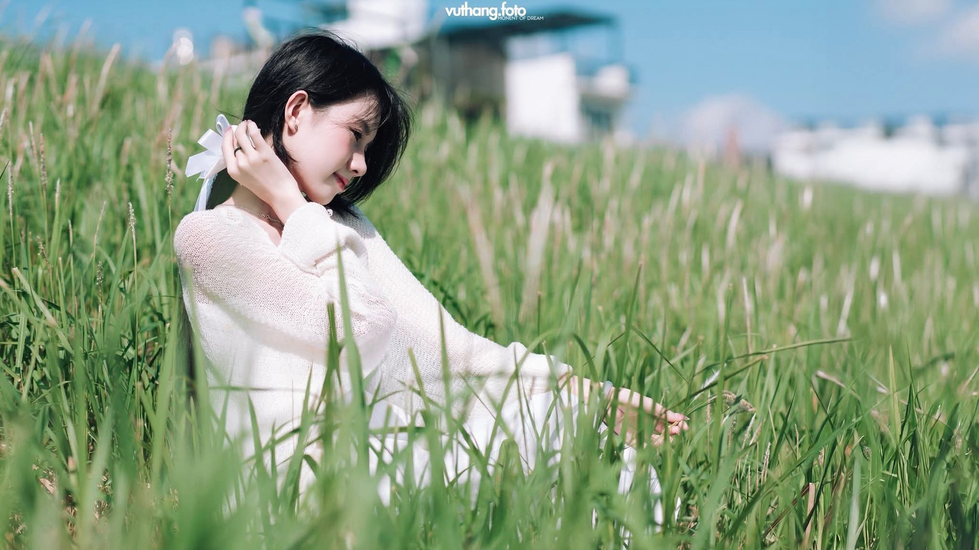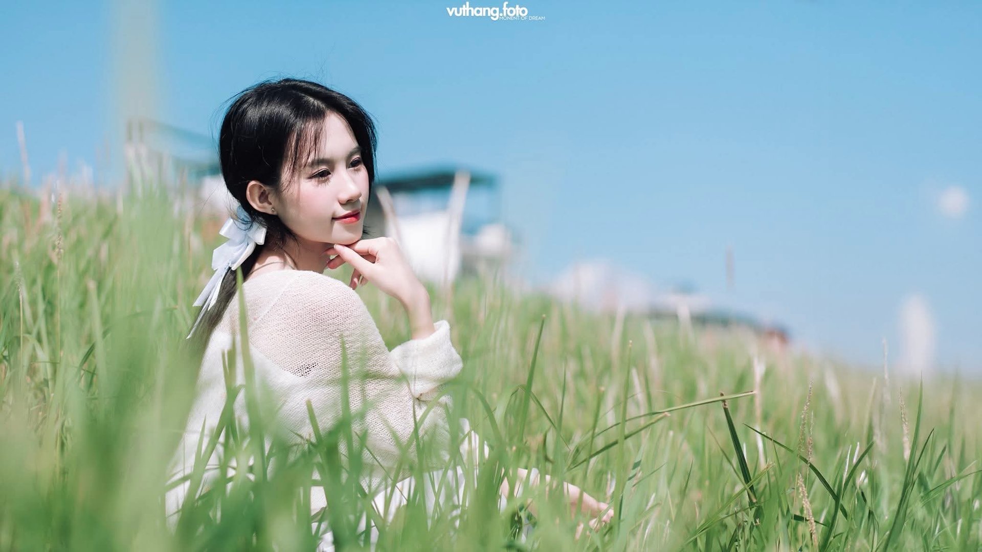 Image 1000018109.jpg captures the gentle, pure beauty of a young girl, standing out gracefully amidst a beautiful natural landscape. With a soft smile and clear eyes, she sits in a lush green grass field under a vast blue sky. This depiction of a human harmonizing with the natural scenery creates a peaceful, poetic, and vibrant tableau. Her beauty radiates purity and innocence, offering a sense of relaxation and comfort to the viewer. It's a stunning moment showcasing the harmonious connection between people and Mother Nature, a simple yet captivating beauty, ideal for those seeking tranquility and natural elegance.Elegant Vietnamese Woman in White Ao Dai Embracing Spirit of Independence