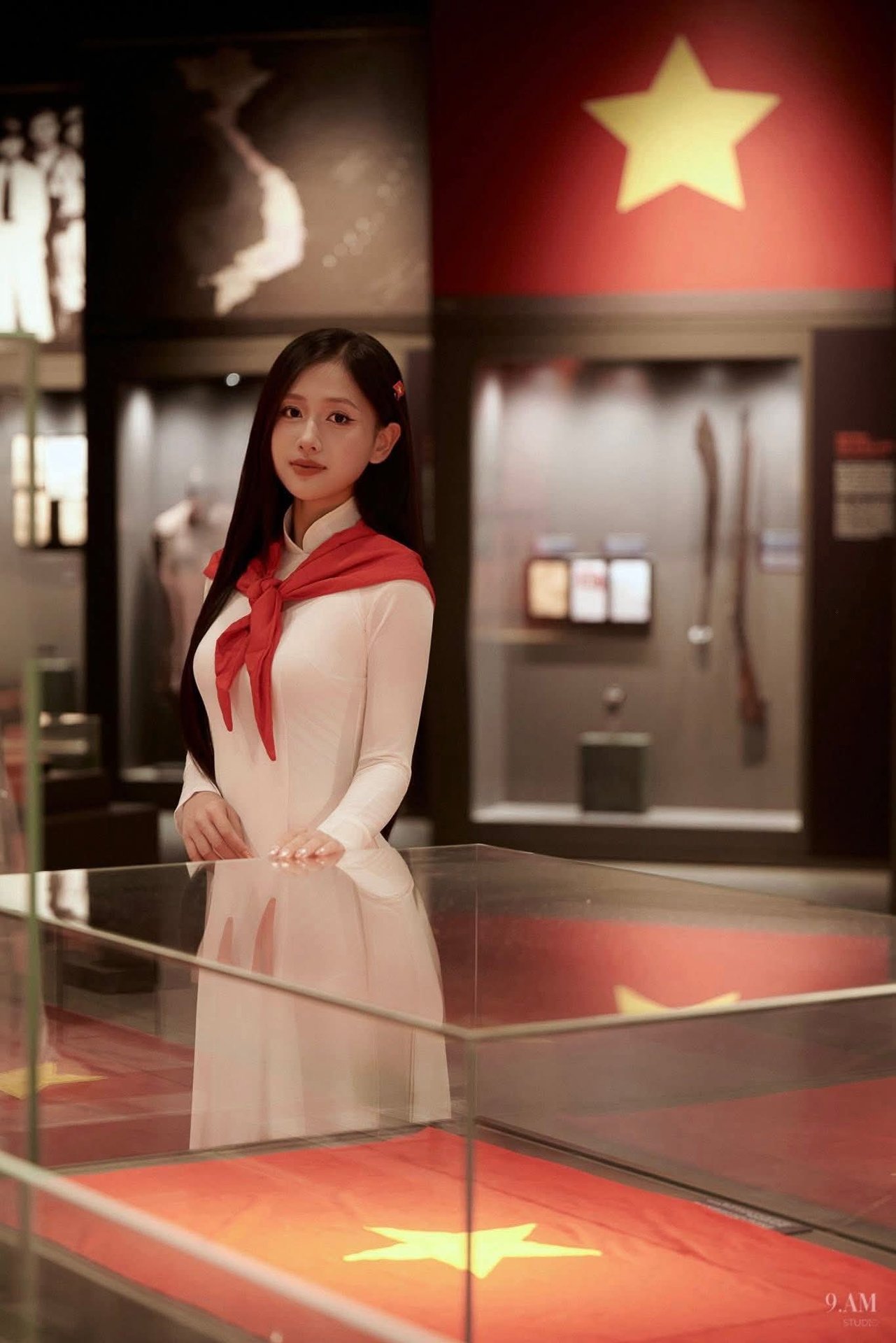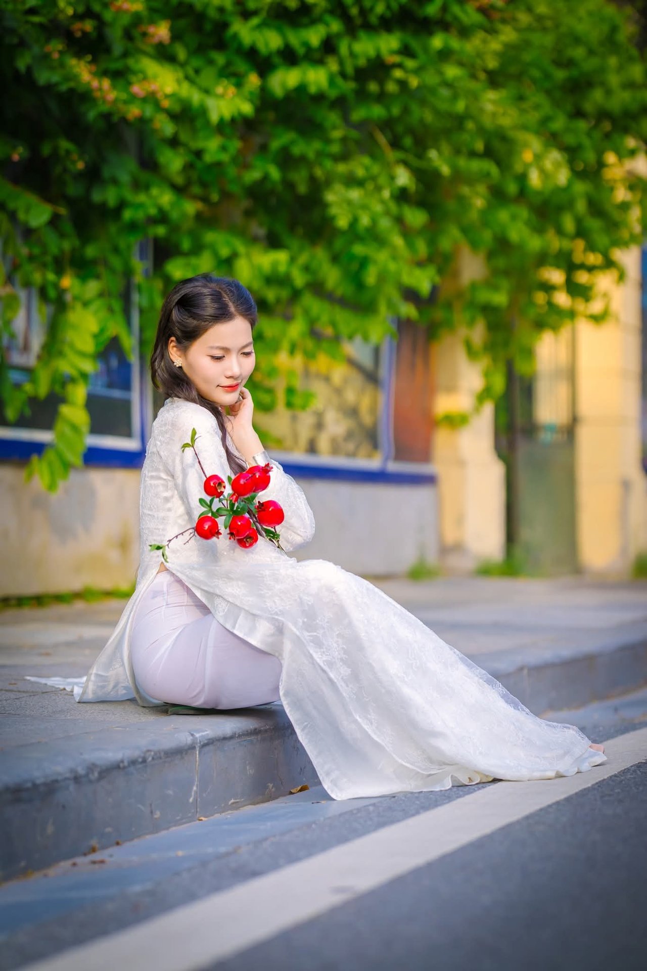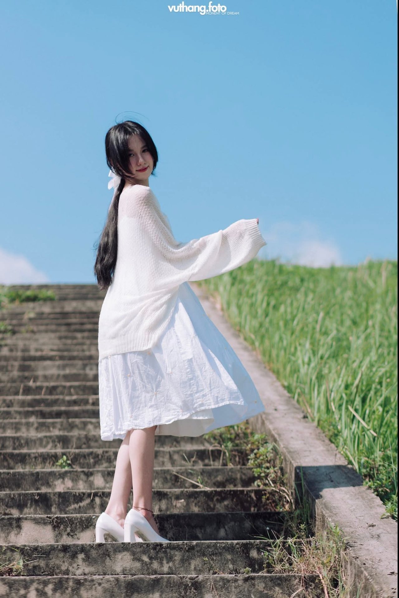 Image 1000018109.jpg captures the gentle, pure beauty of a young girl, standing out gracefully amidst a beautiful natural landscape. With a soft smile and clear eyes, she sits in a lush green grass field under a vast blue sky. This depiction of a human harmonizing with the natural scenery creates a peaceful, poetic, and vibrant tableau. Her beauty radiates purity and innocence, offering a sense of relaxation and comfort to the viewer. It's a stunning moment showcasing the harmonious connection between people and Mother Nature, a simple yet captivating beauty, ideal for those seeking tranquility and natural elegance.Elegant Vietnamese Woman in White Ao Dai Embracing Spirit of Independence