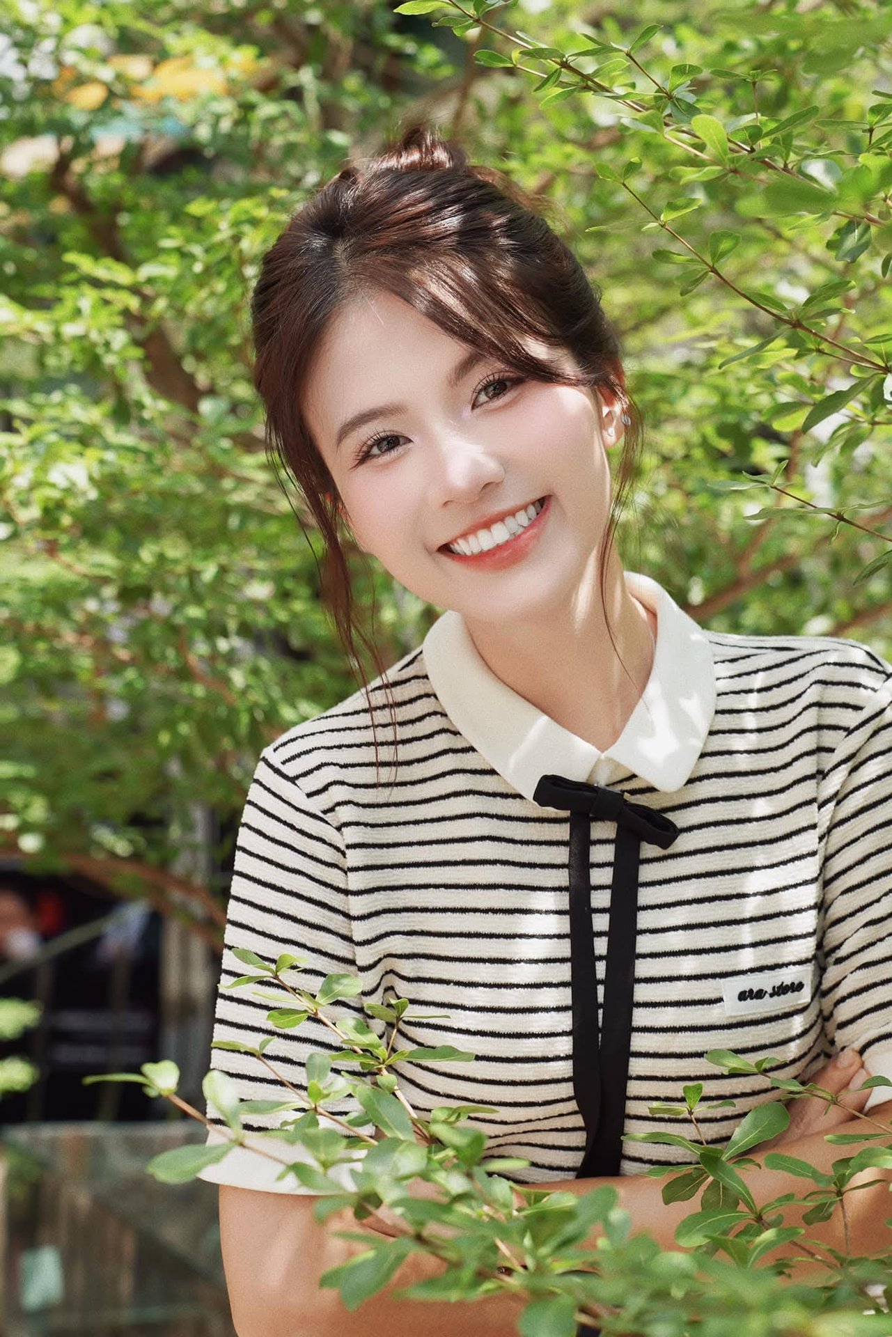 This stunning image captures a beautiful portrait of a young woman exuding innocence and a bright, gentle smile. Her radiant face, joyful eyes, and neatly tied hair convey a sense of natural grace and purity. Dressed in a simple striped shirt, she embodies a casual yet elegant style. With a soft, blurred green background, the photograph keeps the focus entirely on the person, creating a serene and captivating mood. This high-quality HD wallpaper is perfect for anyone seeking a pure and delicate aesthetic. This portrait not only showcases her inherent beauty but also inspires optimism and freshness, making it an ideal choice for a minimalist yet expressive display.