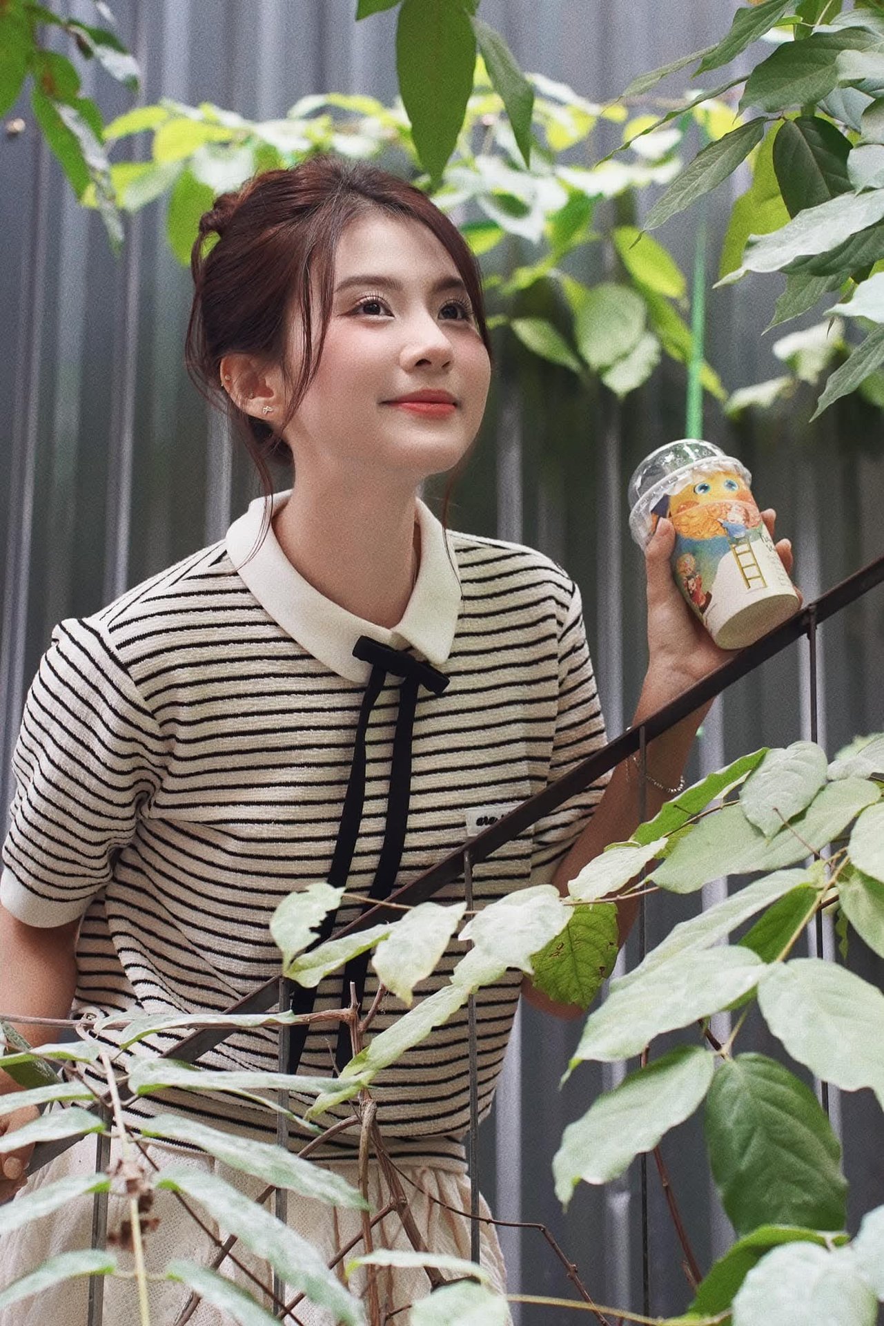 Elegant Beauty of a Young Vietnamese Girl in a Cafe Setting