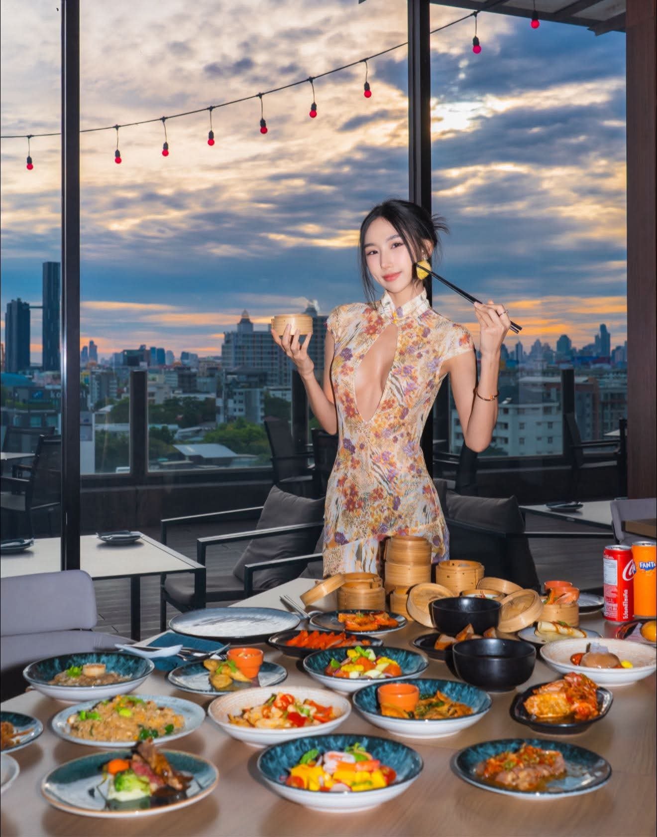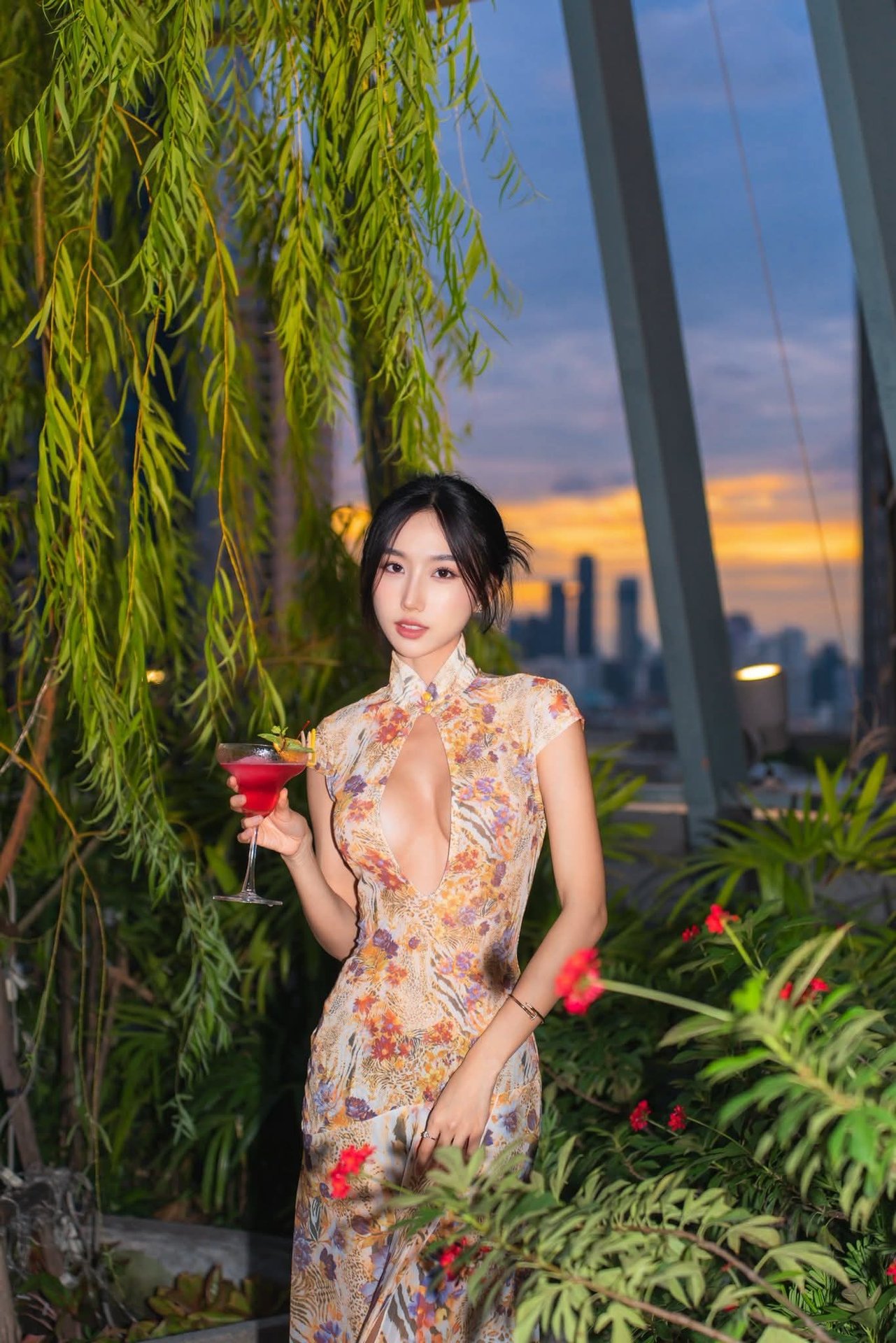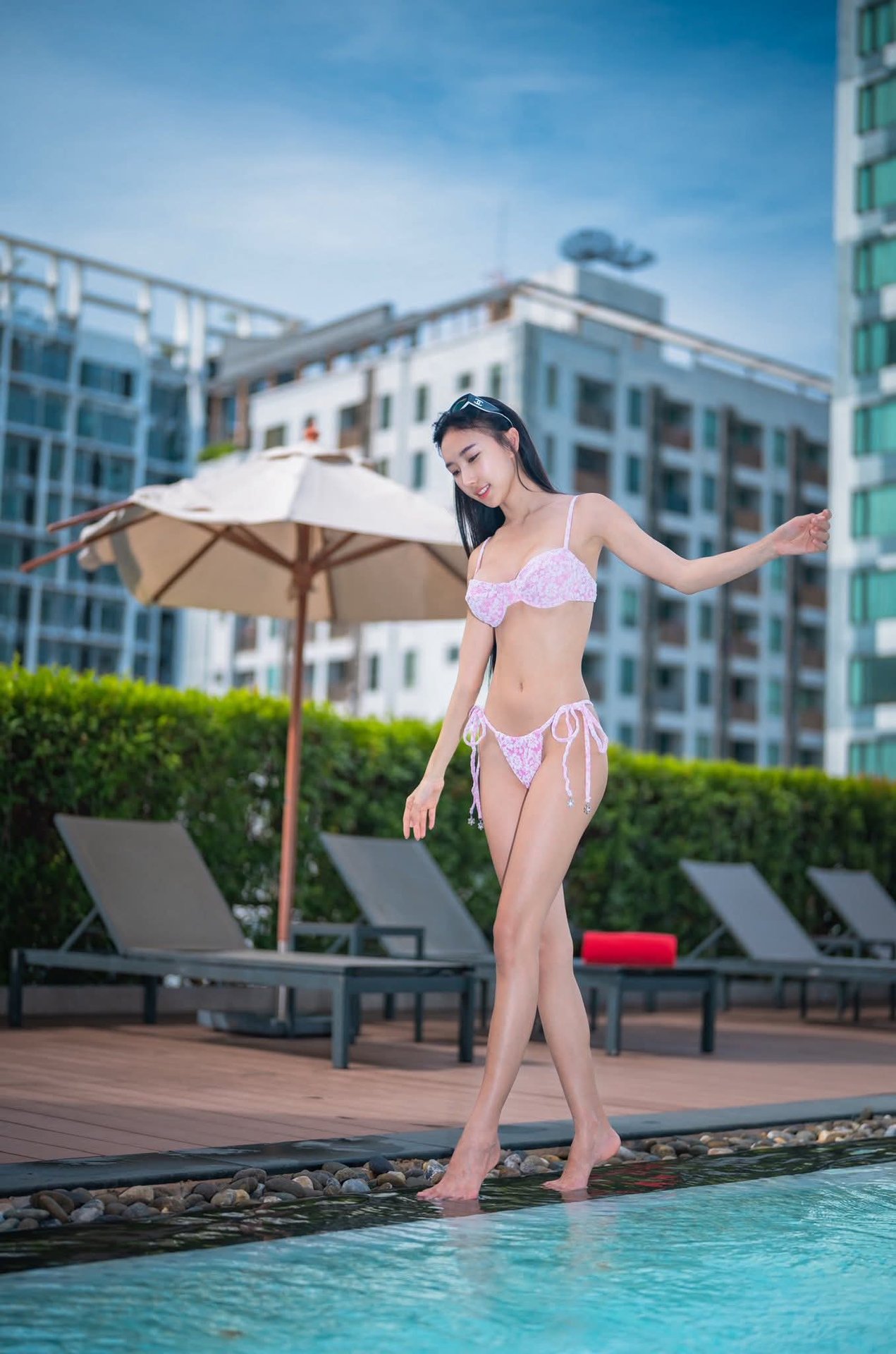 Tammy Pham shines brightly showcasing her alluring beauty by the high rise infinity pool She wears a charming polka dot two piece outfit both cute and subtly sensual With her long flowing hair and confident demeanor Tammy Pham captivates every gaze The stunning cityscape and distant ocean view further enhance her beauty This moment exudes relaxation and sophisticated style Tammy Pham posing by the infinity pool is enchanting fully displaying her graceful physique and radiant confidence The polka dot attire highlights her gentle femininity and captivating charm this is a beautiful and emotional photo capturing an ideal vacation