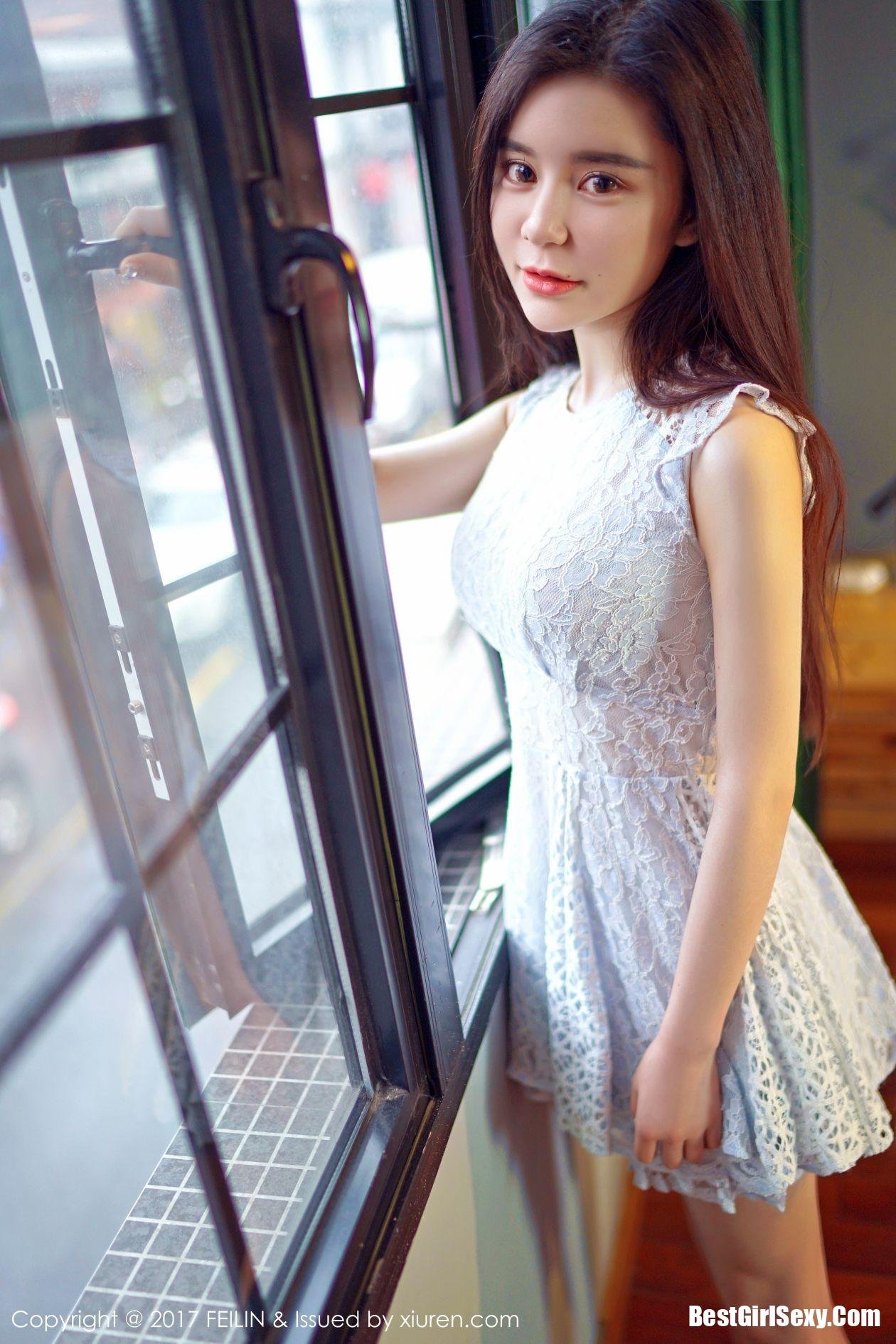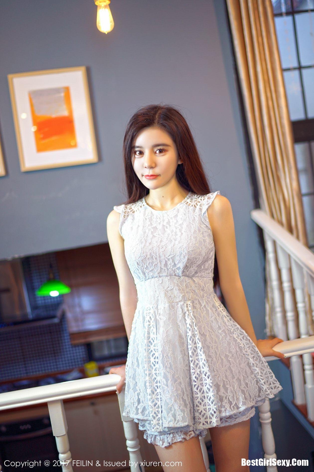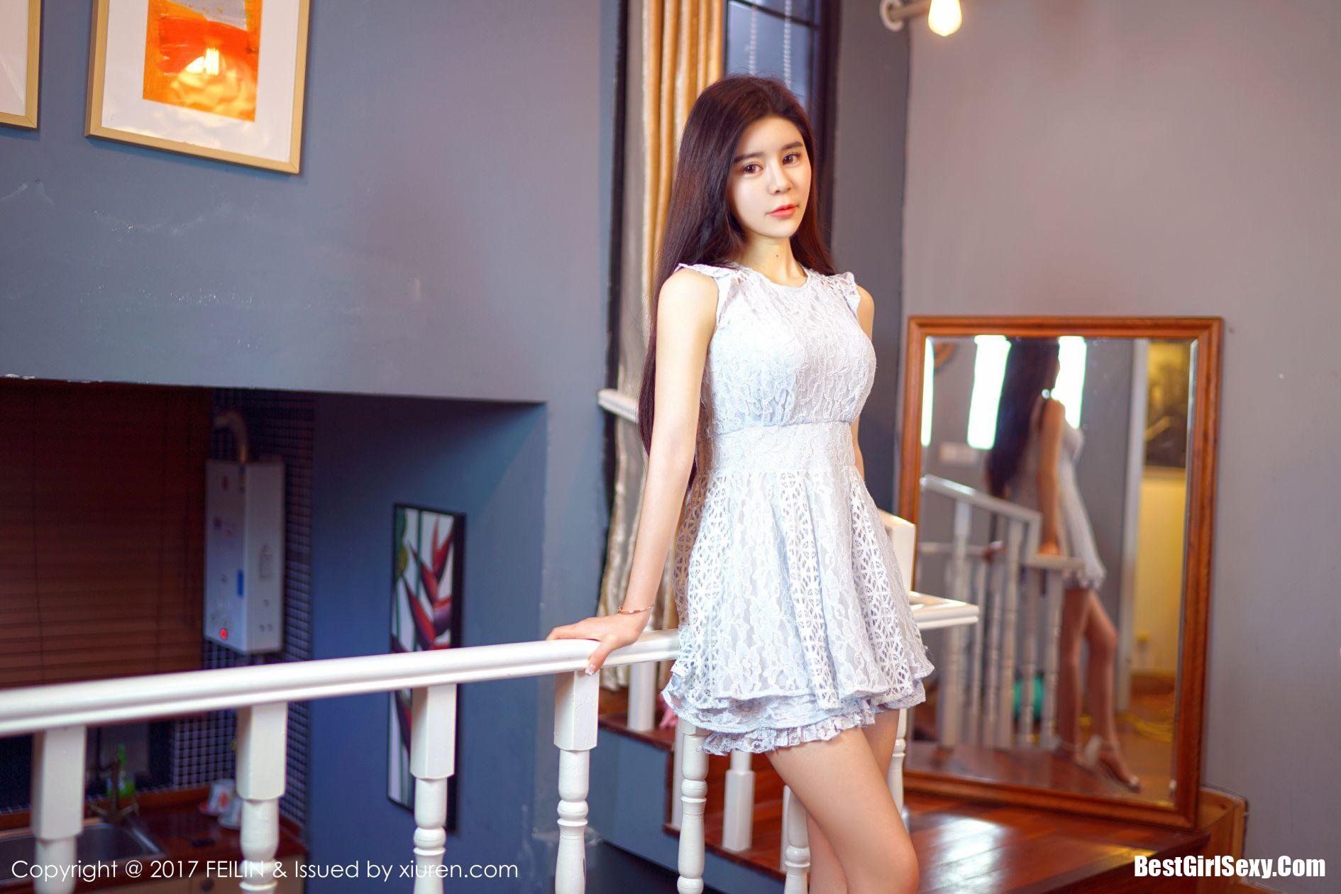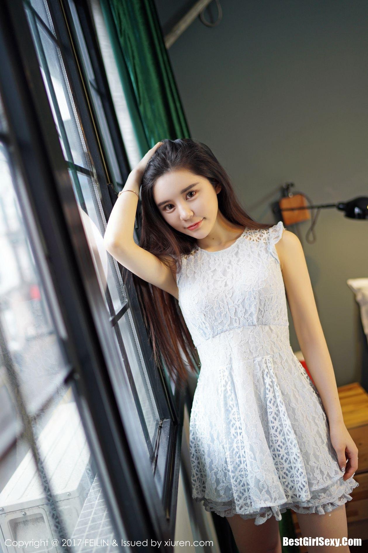 FeiLin Vol.072 Gary Wei Ai: Beautiful Asian Girl Gary Wei Ai in Elegant White Dress Photo